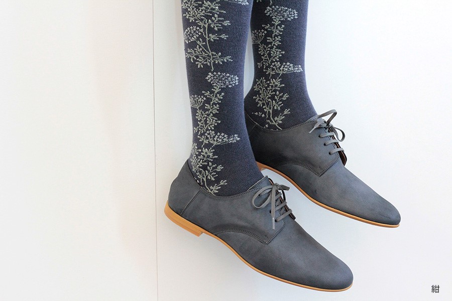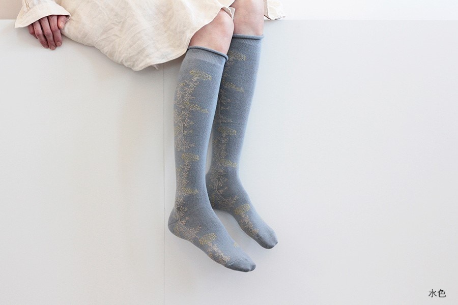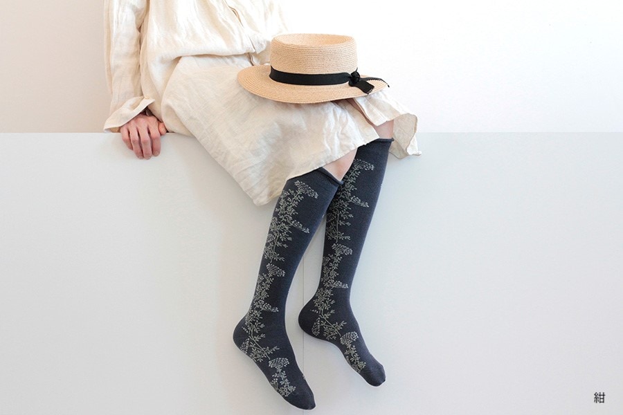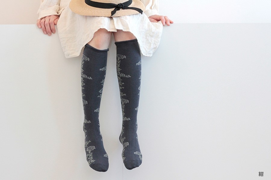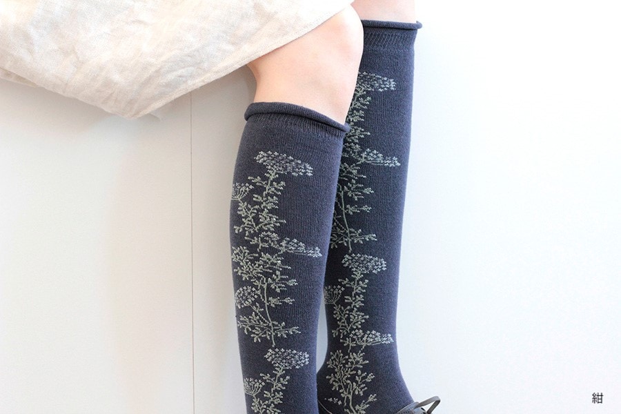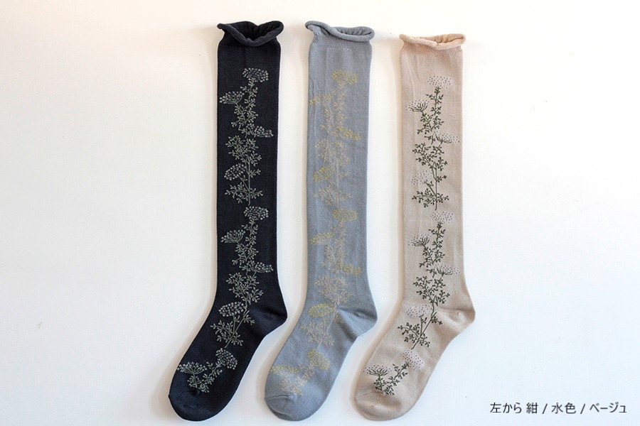 可憐なニンジンの花をあしらったデザインが特徴のハイソックスです。