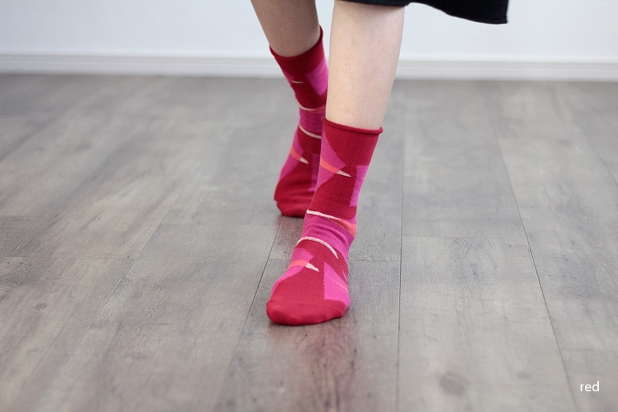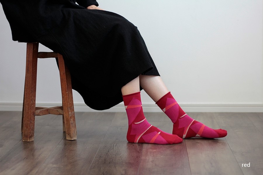 テキスタイルデザイナーはしもとなおこさんとハッピーソックスのコラボ商品です。
