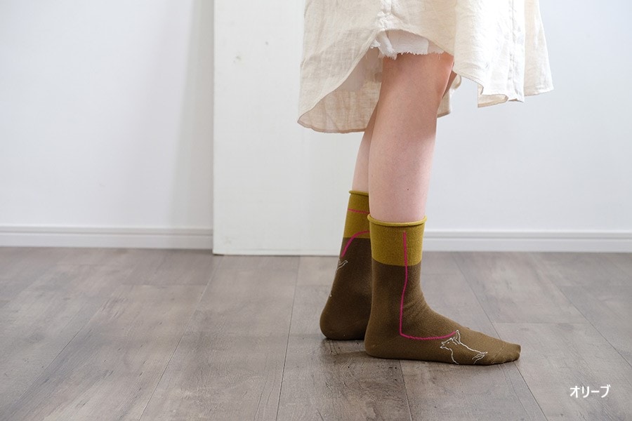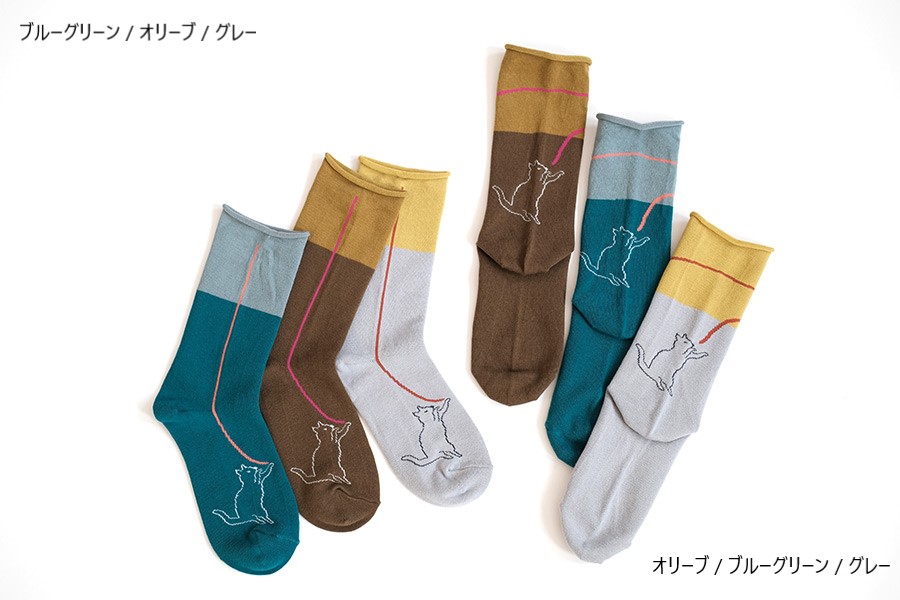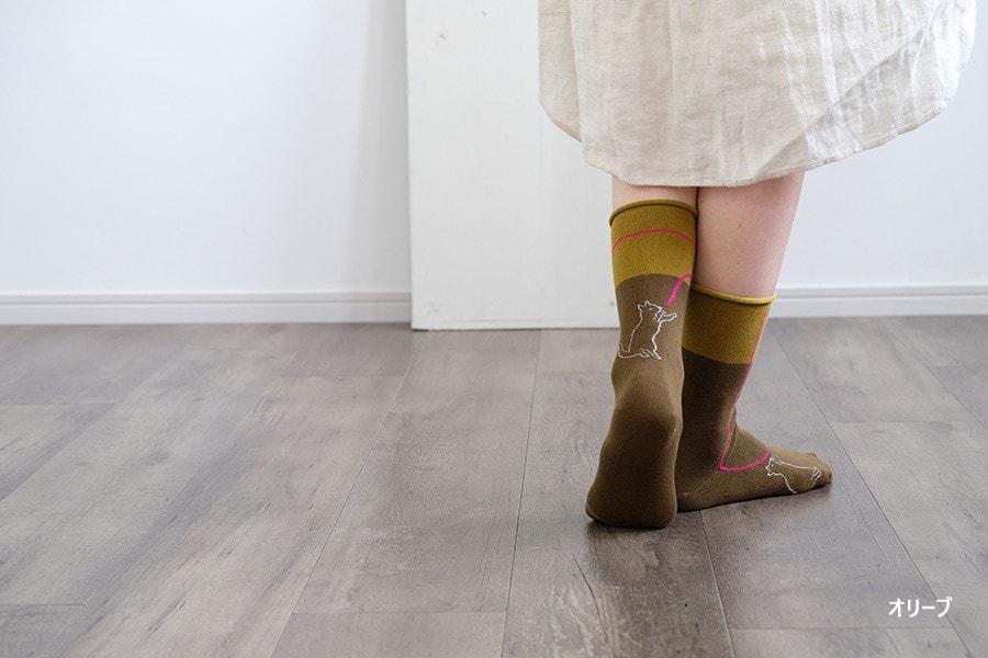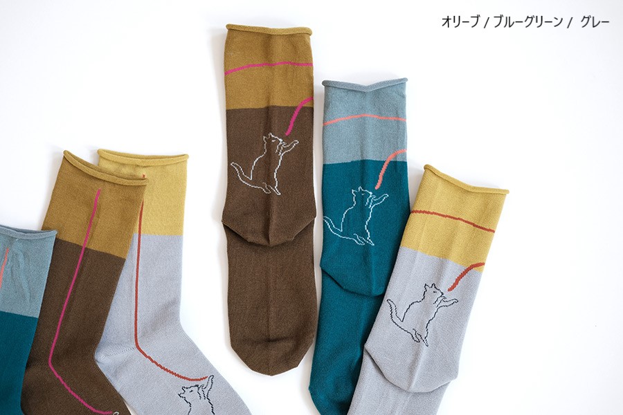 シックなカラーリングは年齢関係なく履いていただけますし猫好きな方へのプレゼントにも喜ばれそうです。