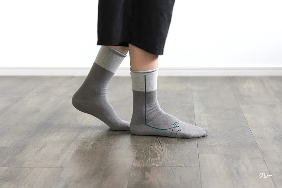 履き口にゴムがない靴下ですので、ストレスなく履いていただけますので、ゴムの締め付けが苦手な方にもお勧めです。