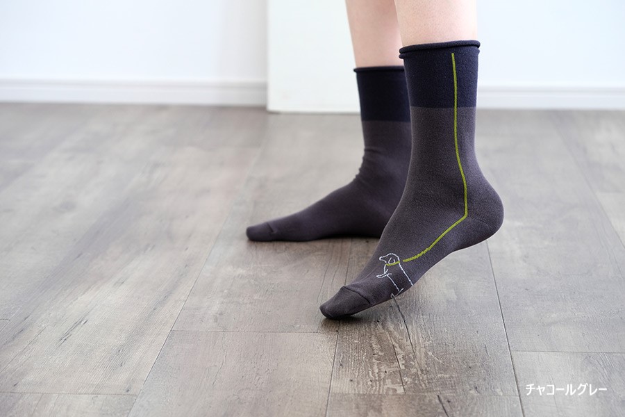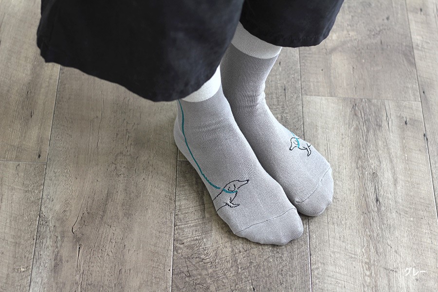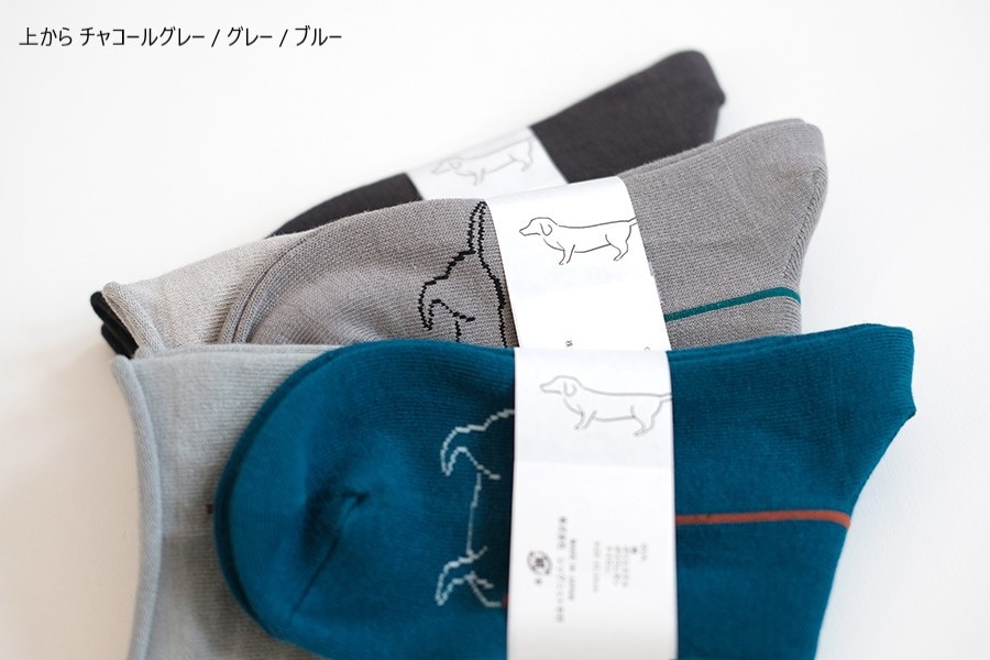 シックなカラーリングは年齢関係なく履いていただけますし犬好きな方へのプレゼントにも喜ばれそうです。