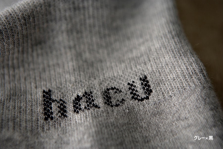 足首の後あたりに「ハッピーソックス」の文字入り。