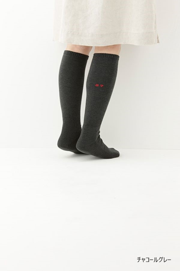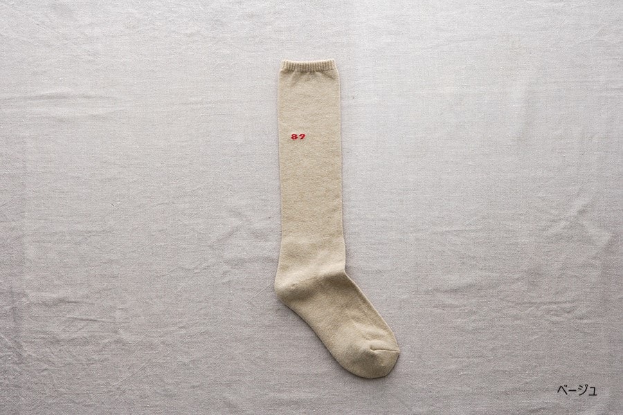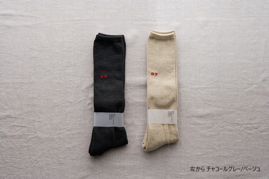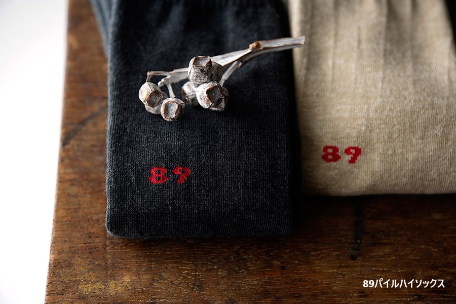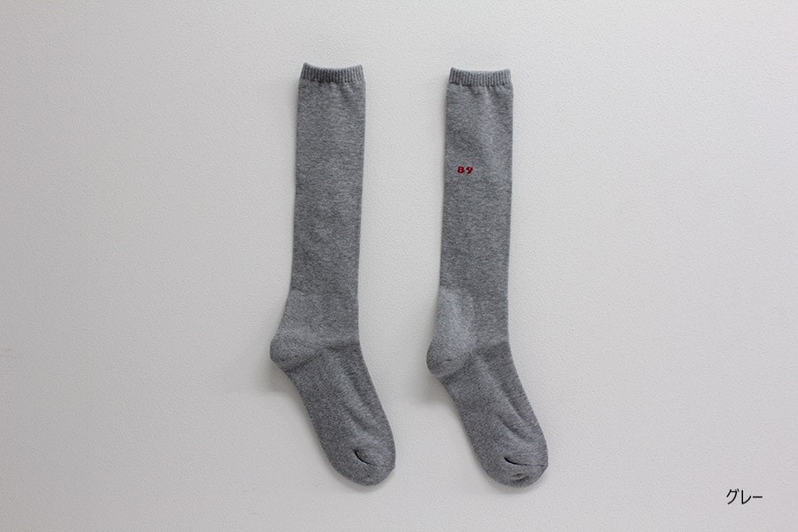 片方は無地のハイソックス、もう片方には斜め後部分に「89」のワンポイントをつけてみました。