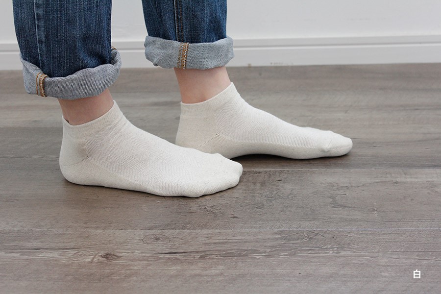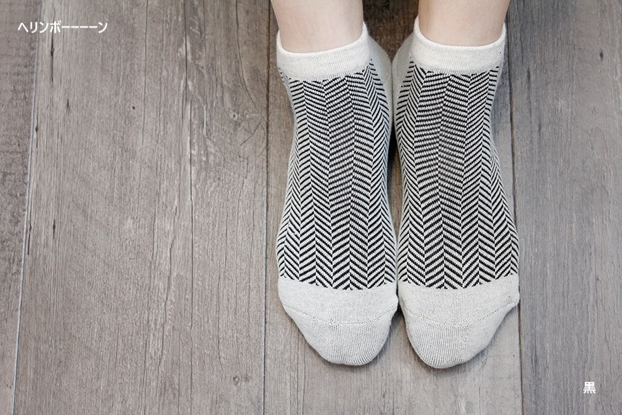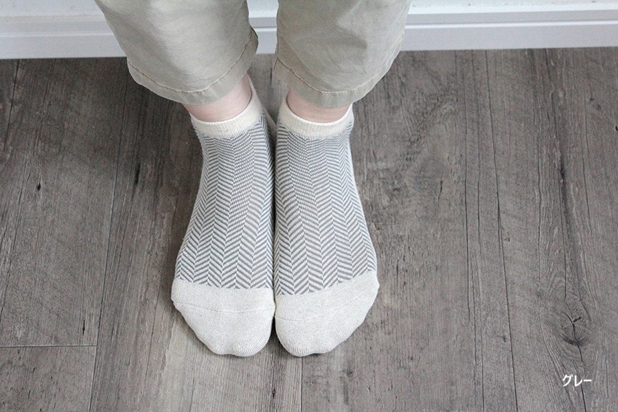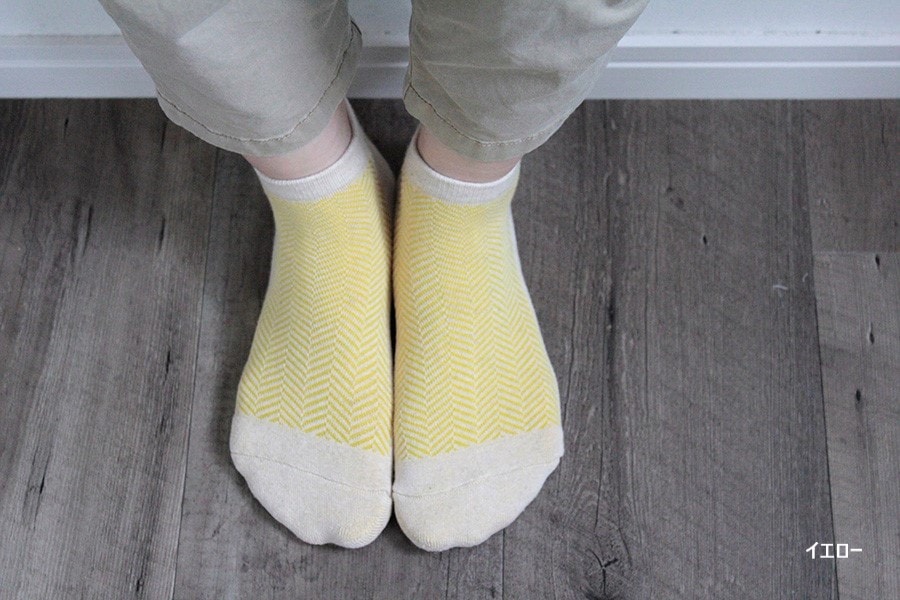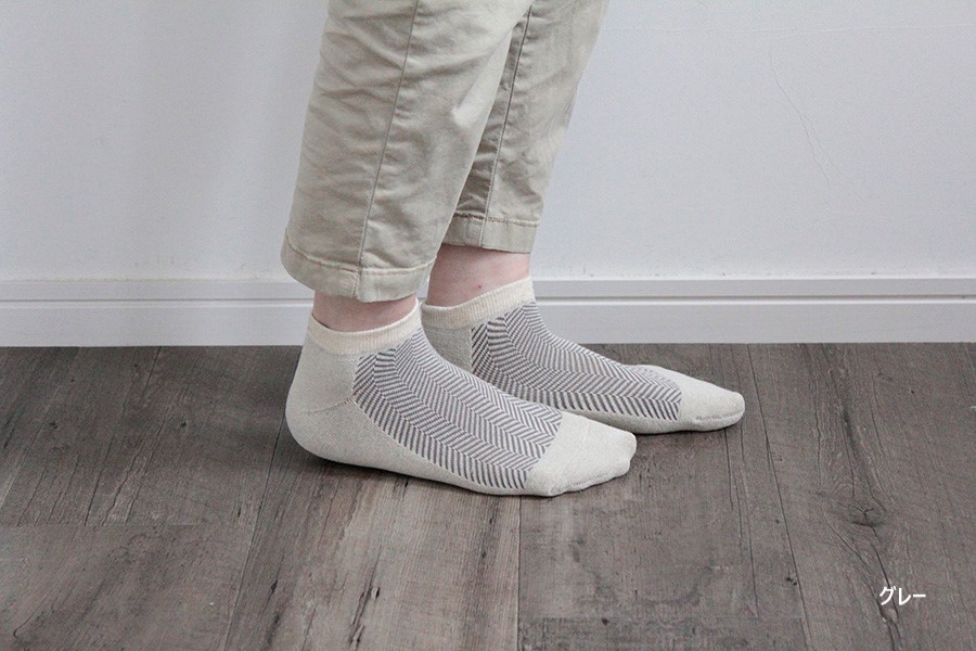 足の甲のメッシュがヘリンボーン(綾杉)になっているシンプルなスニーカーパイルソックス。