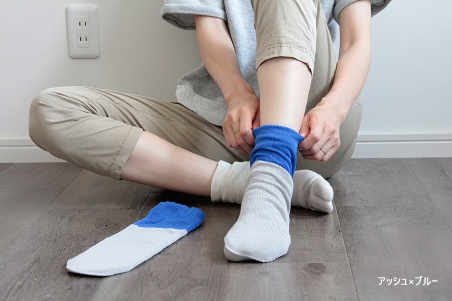 2枚(綿とシルク)を履き口で閉じている靴下ですのでお洗濯後はしっかり形を整えて干してください。