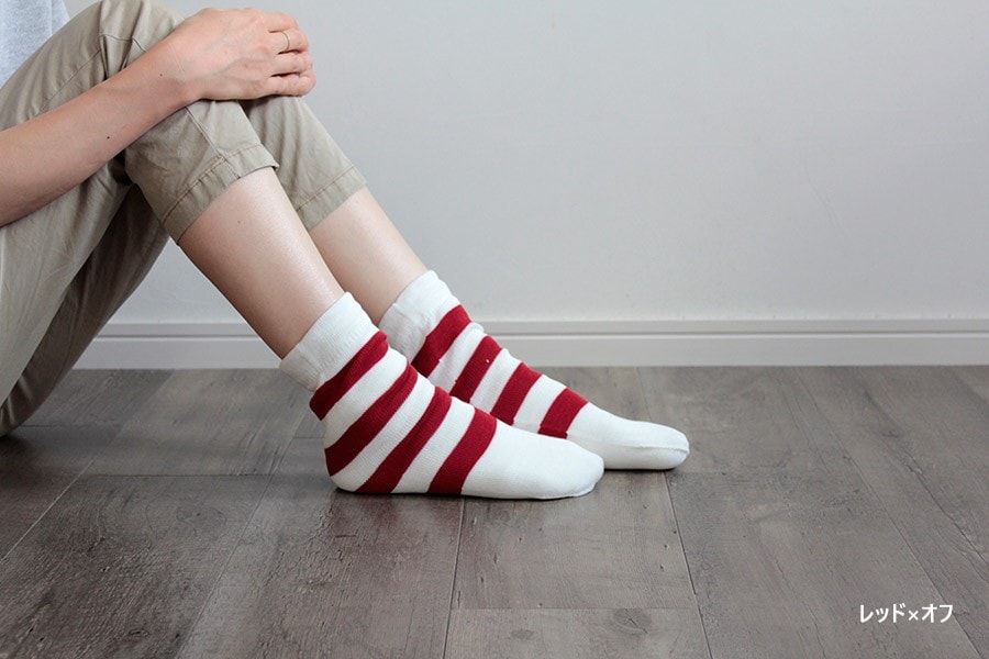 重ね履きの3枚目と4枚目が一度に履ける靴下です。足首にあたる部分に配色がある、ちょっとうれしいデザインです。