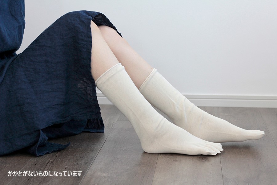 以前、販売していたものよりも指の長さが長くなり、履き口が2重になってゴロついていたものを薄くし、より重ねやすく改良しました。