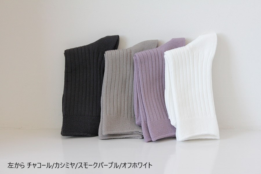 コットンの糸(※表糸)で編んだシンプルなリブソックスです。