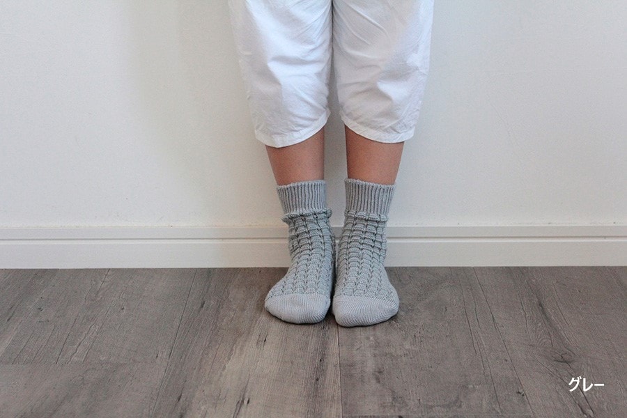 糸を何本も撚って編んでいますので、ふんわりやわらかい履き心地に。