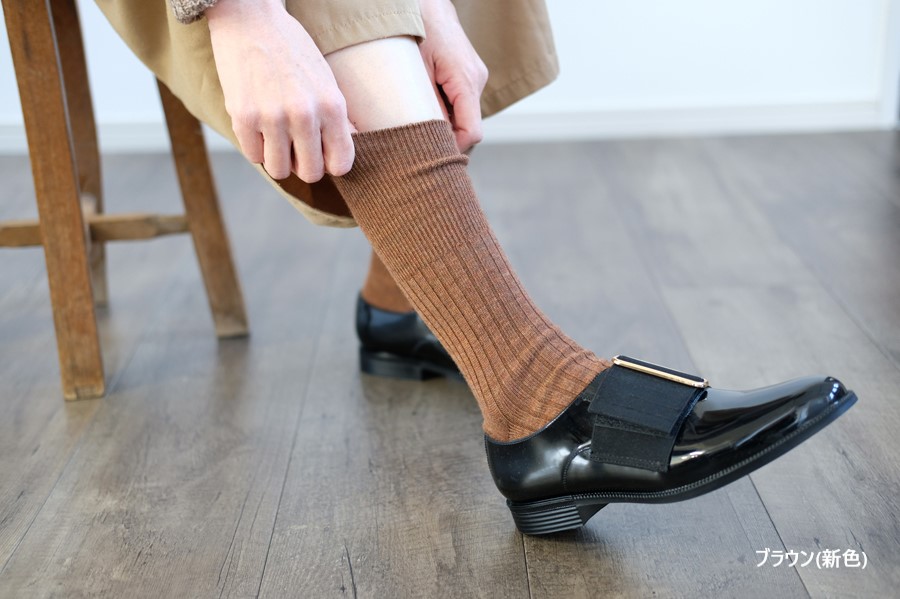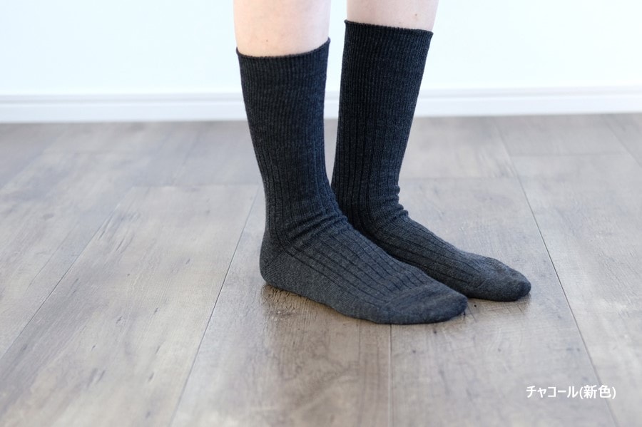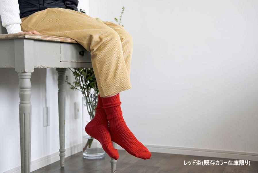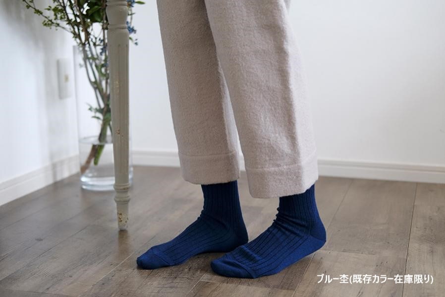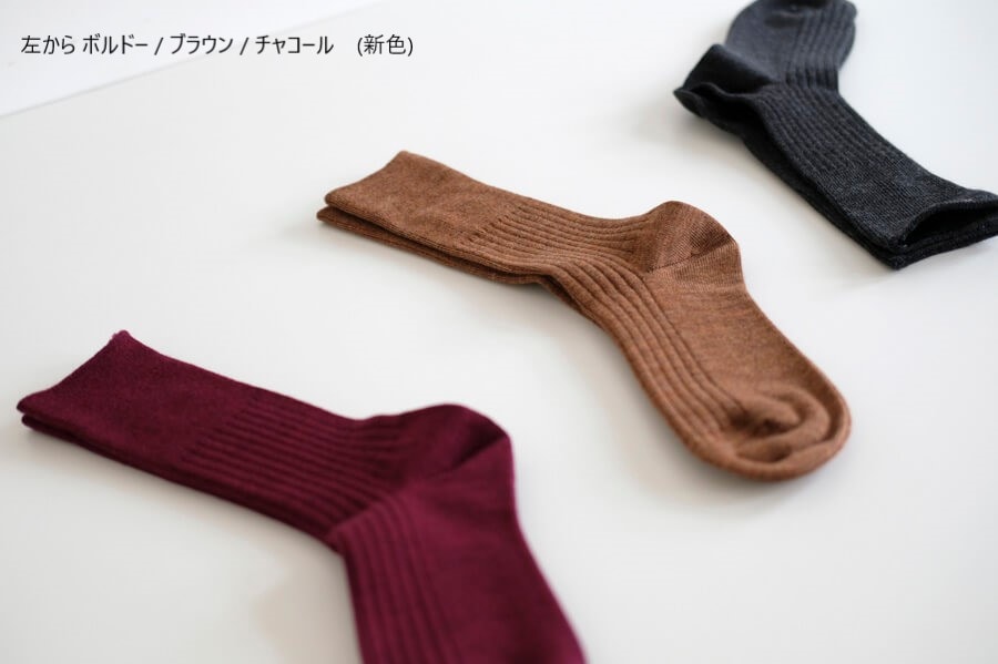 レディース(23-25)サイズも大人気の、ウールリブソックスのデザインをそのままに、新たなカラー展開で編立ました。