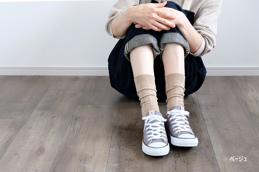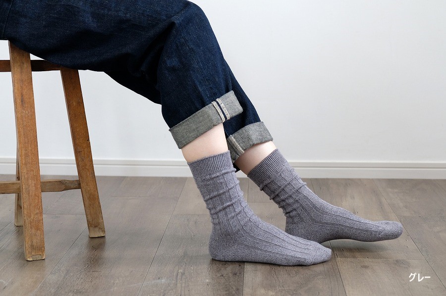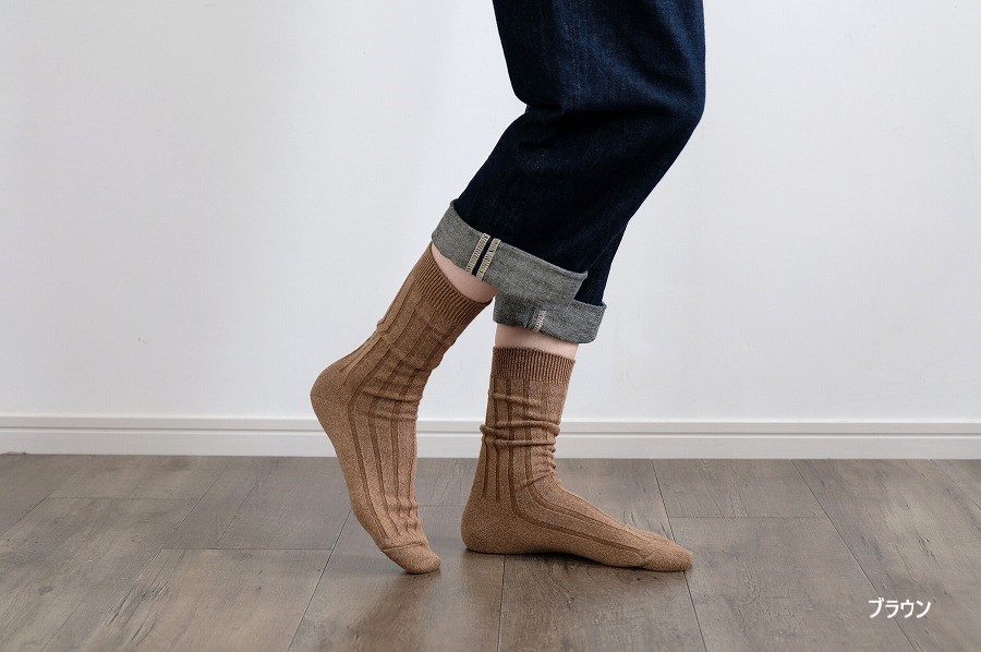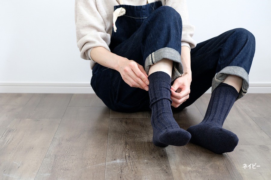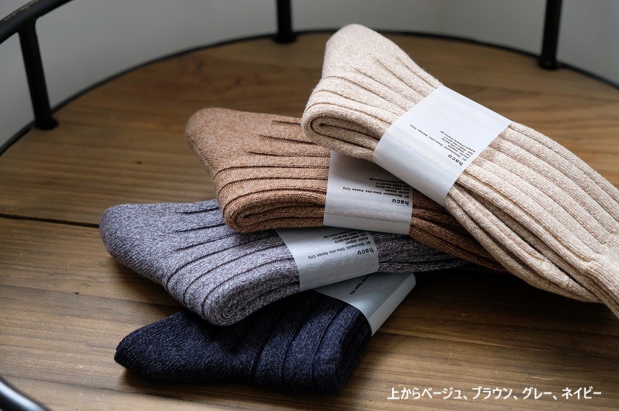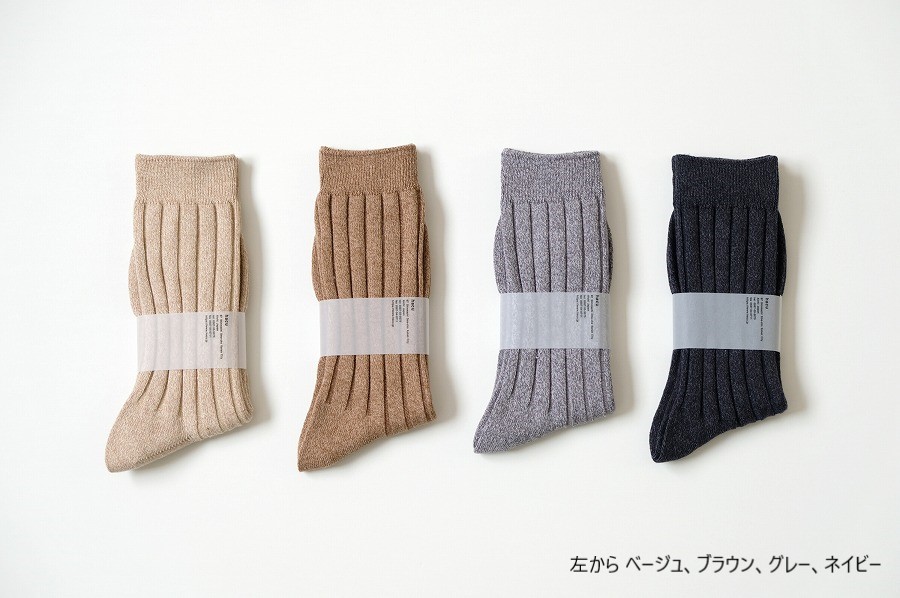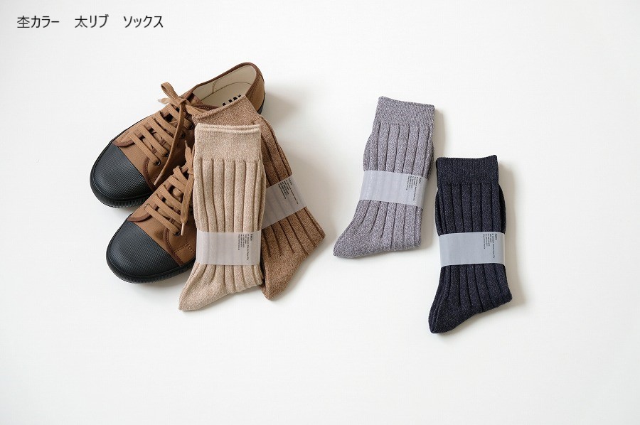 定番の太リブソックスは、履き心地のよさと優しい色合いです。