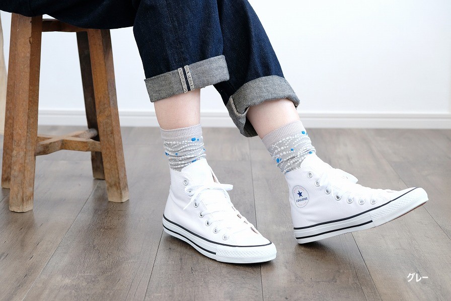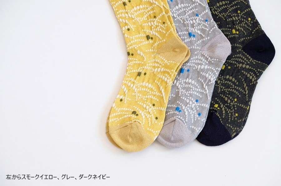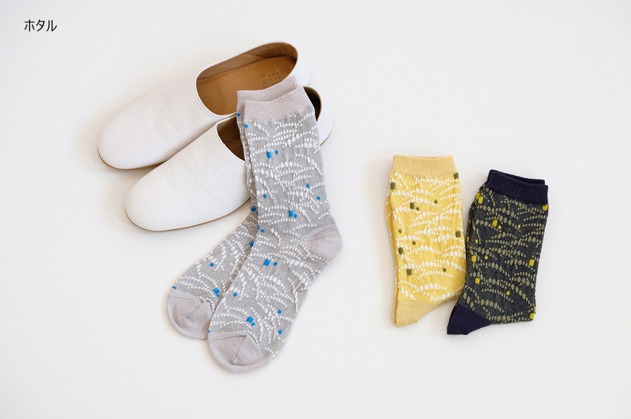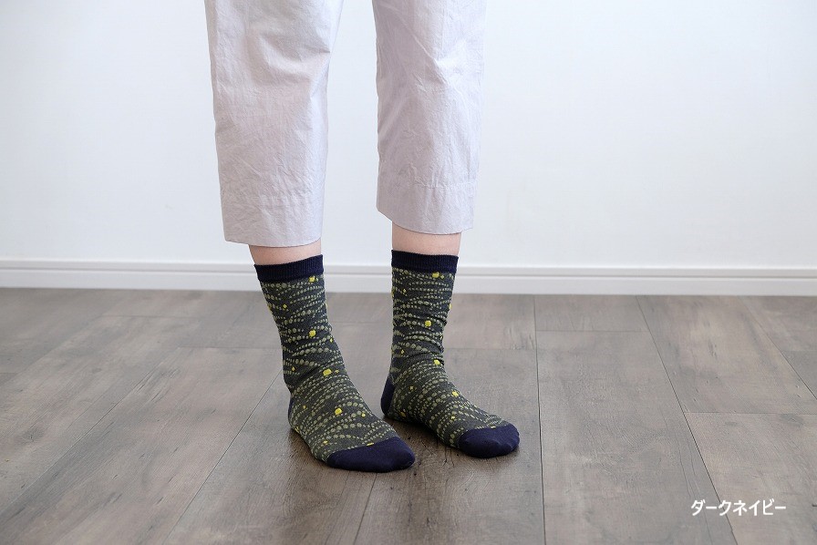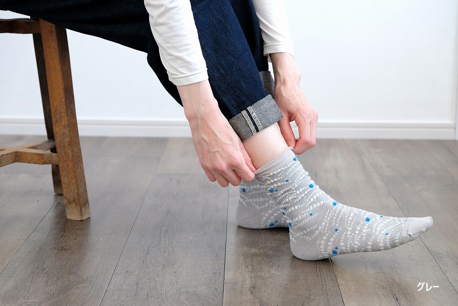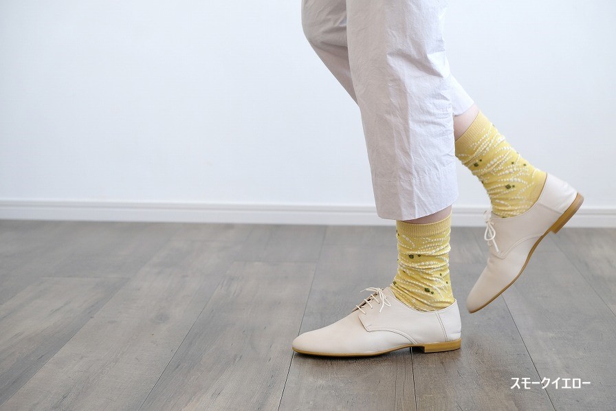凹凸が表情豊かな生地面ですが、履いてみると 肌に気持ちよく、ファッションのアクセントにも。