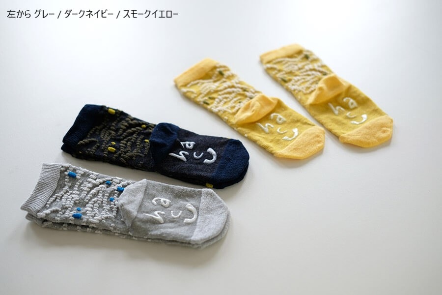 同じデザインでレディースサイズ(クルー丈・ショート丈)やキッズサイズもあります。親子お揃いで履ける靴下です。