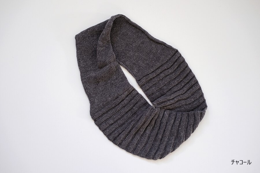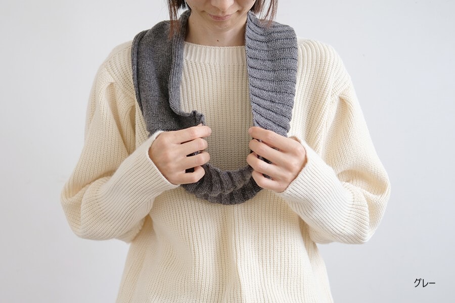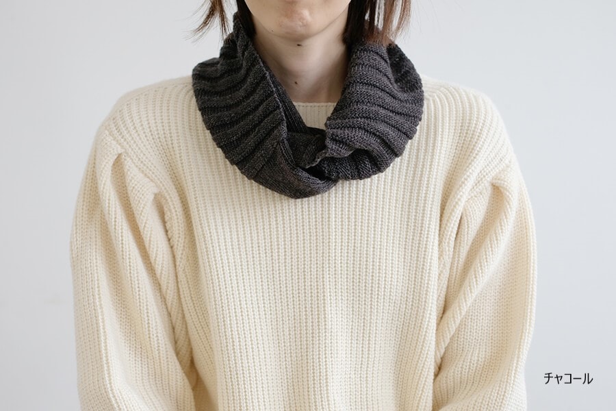 太めのリブと天竺を組み合わせていますので、巻き方でいろんな雰囲気が楽しめます。