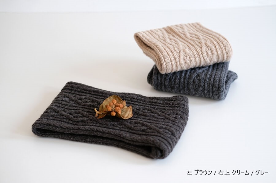 2019年もとても好評だったケーブル編みのネックウォーマー「kirikabu(きりかぶ)」。