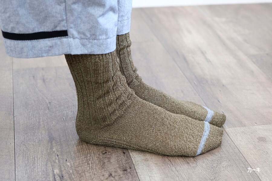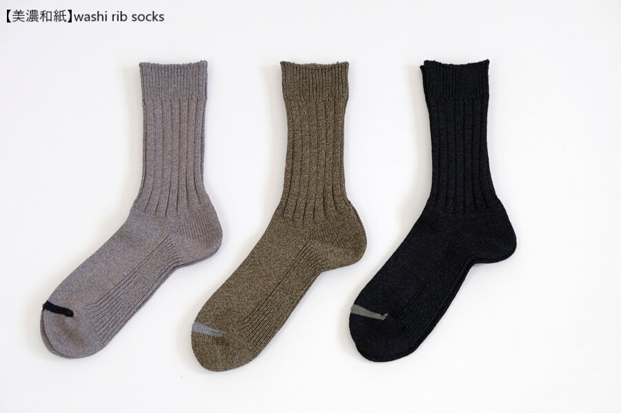 太い和紙(美濃和紙)の糸で、ざっくりとしたリブソックスを編立てました。