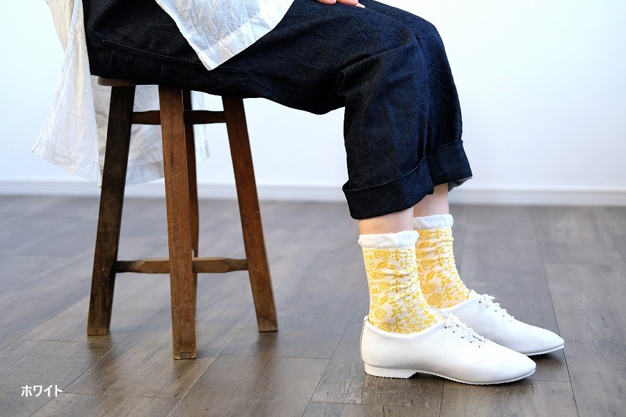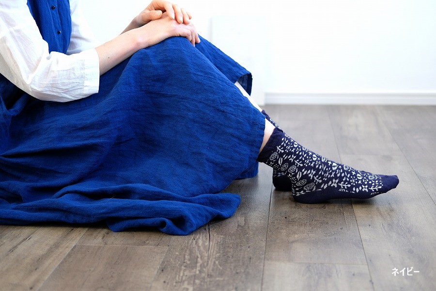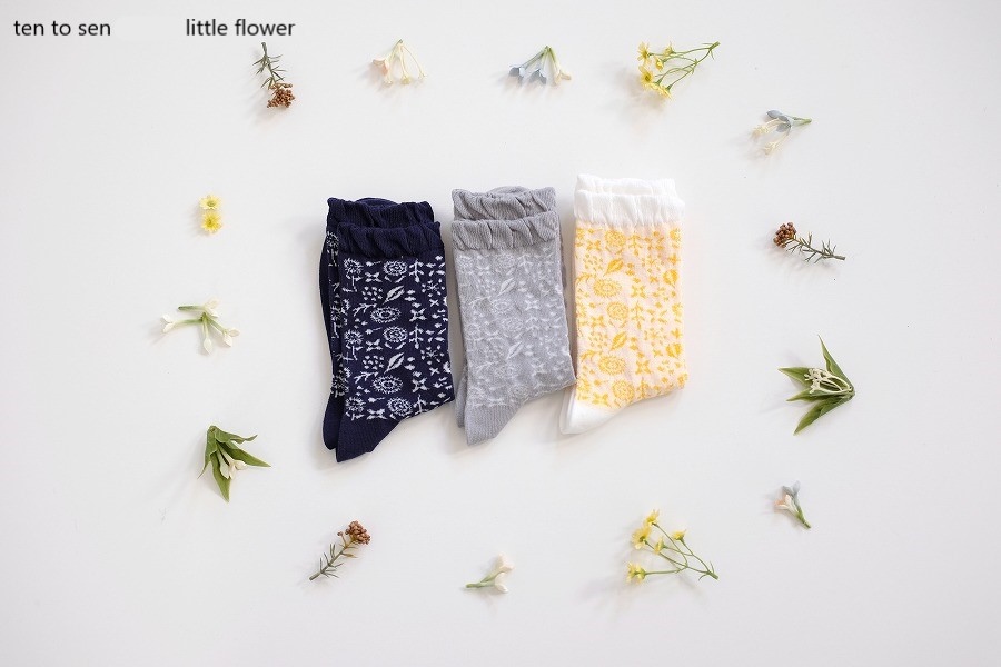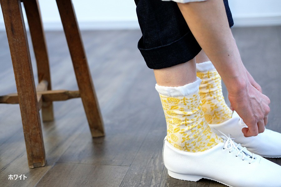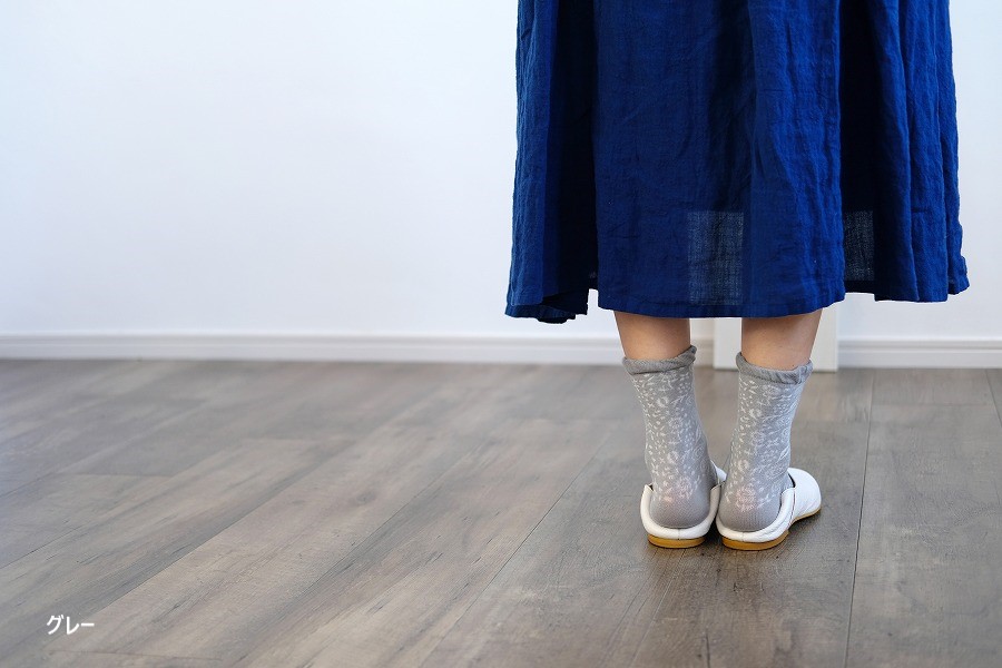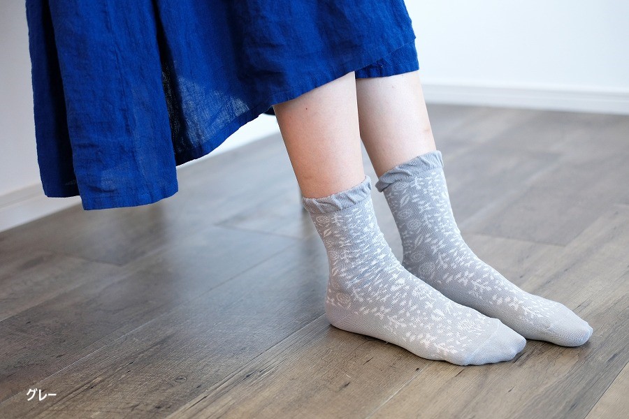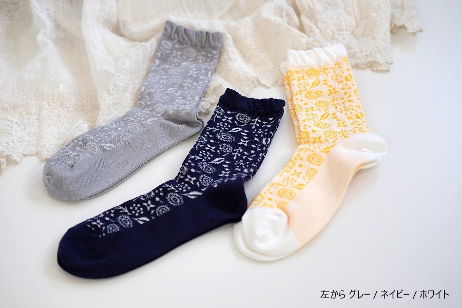 全体に施した小花柄が透かしになっている、春夏にピッタリなクルー丈ソックスです。