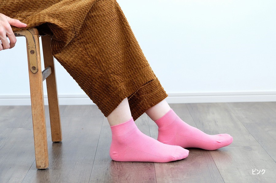 かかと部分は、フィットするようYヒールにしているのと、つま先をリンキング編みにすることで、縫い目が肌にあたることなく、ストレスなく履いていただけます。