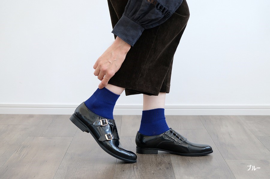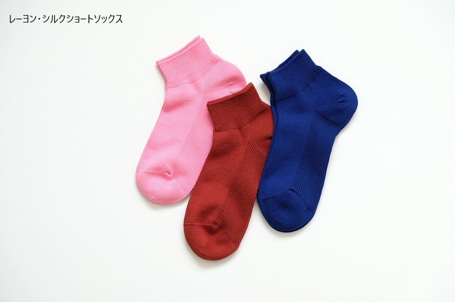 滑らかなレーヨンシルクの糸で編立てた、シンプルなショートソックスです。