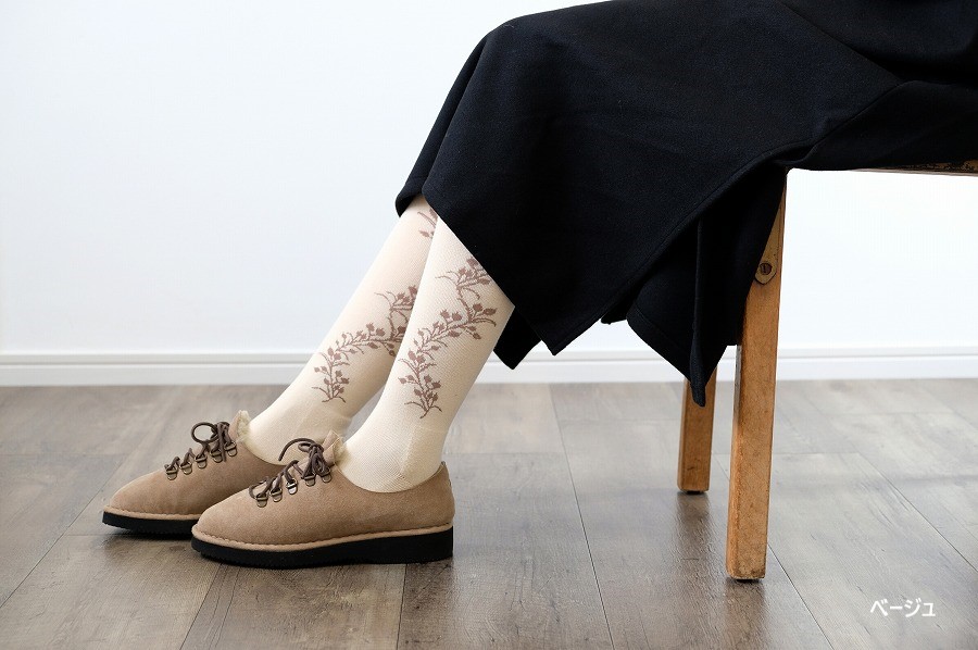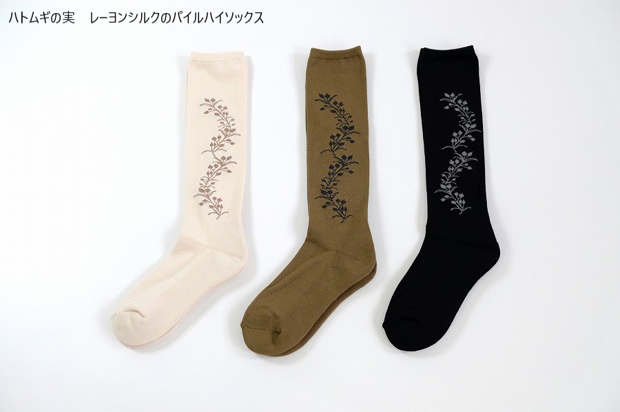 人気の「ハトムギの実」シリーズのパイルハイソックスです。滑らかな肌触りが特長の レーヨン・シルクの糸を使って編みました。