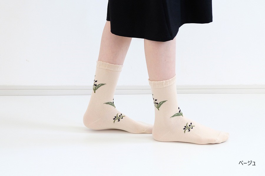 汗ばむ季節に快適に履けるコットン素材で、かわいい雰囲気が人気の1足です。履き口もフリルに、やさしい履き心地はもちろん、程よいフィット感もある靴下です。