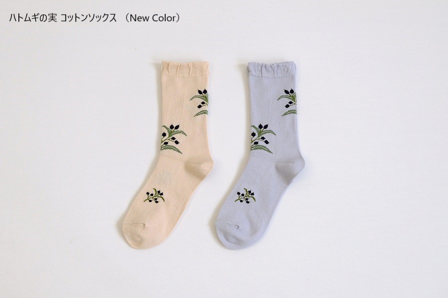 2020年の冬、パイル素材で人気だった「ハトムギの実 パイルソックス」を、 2021年春夏の薄手の靴下にリデザインしたコットンソックス。