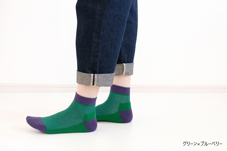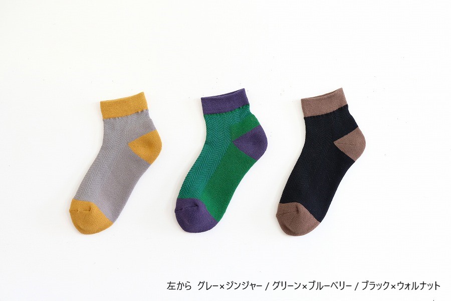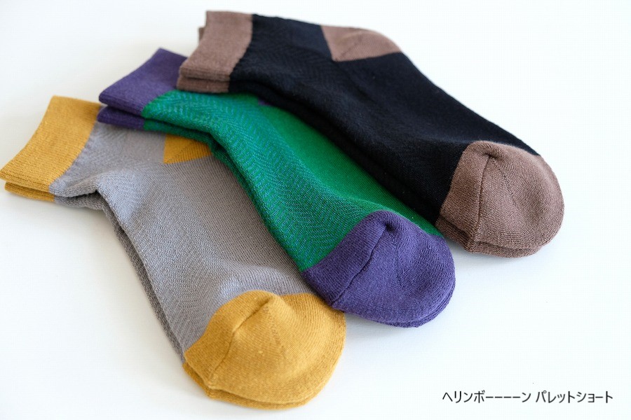 綿麻の糸で編み立てた人気のパイルソックスのヘリンボーーーーンに、くるぶし上までのショート丈が登場です。