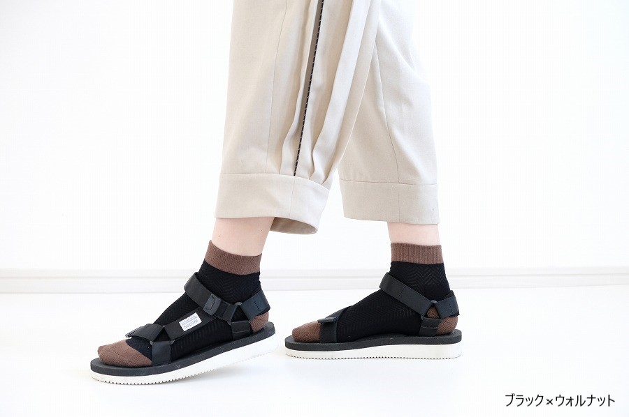 足底はふかふかのループパイル、甲部分のヘリンボーン柄はメッシュになっていて、夏でも快適に履いていただけます。