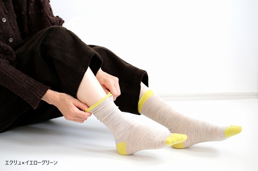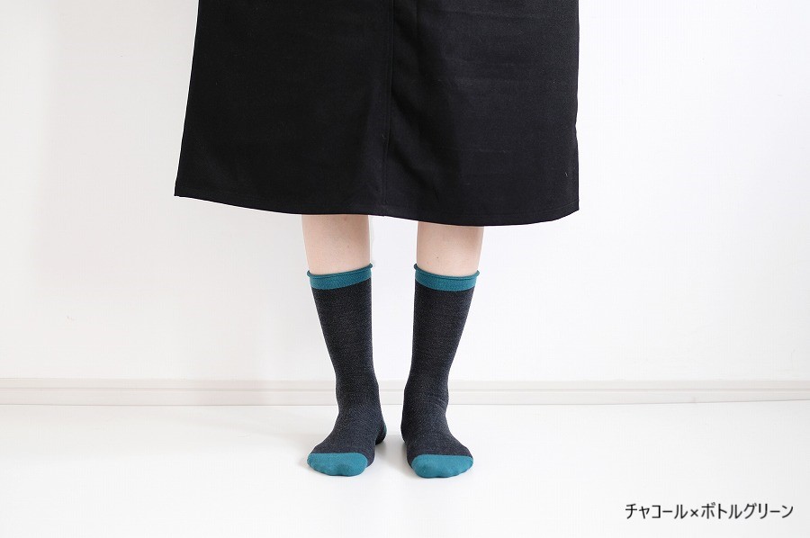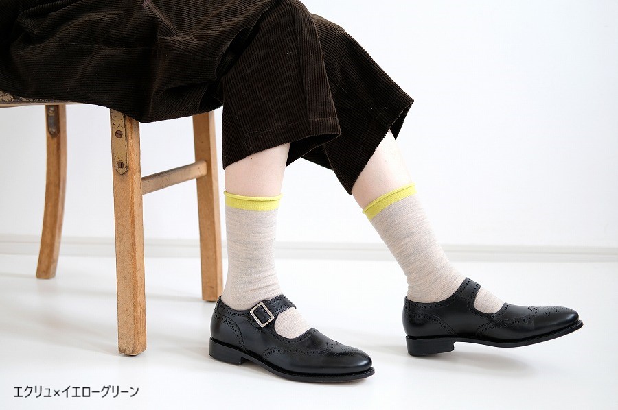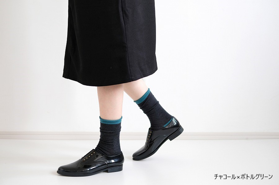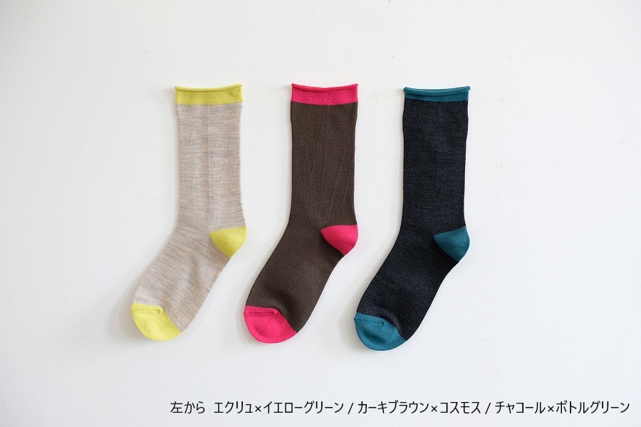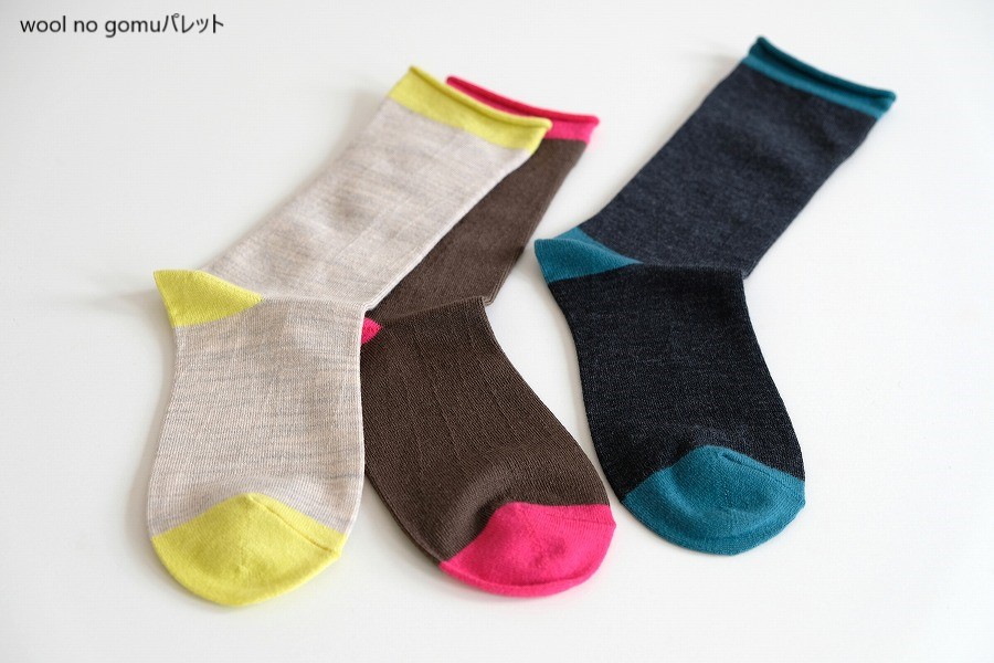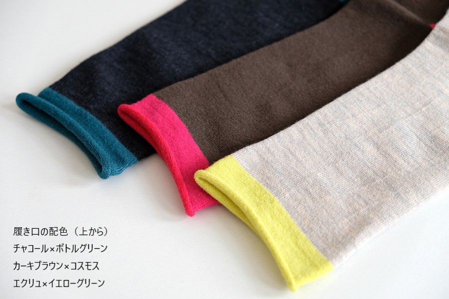オーストラリア産ファインメリノを使用した、no gomu(履き口にゴムがない)のプレーンな靴下です。