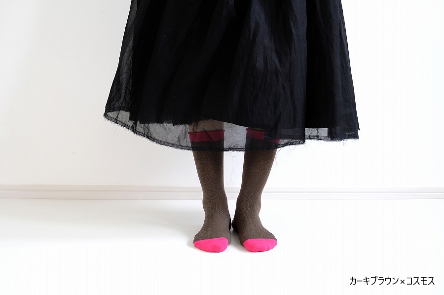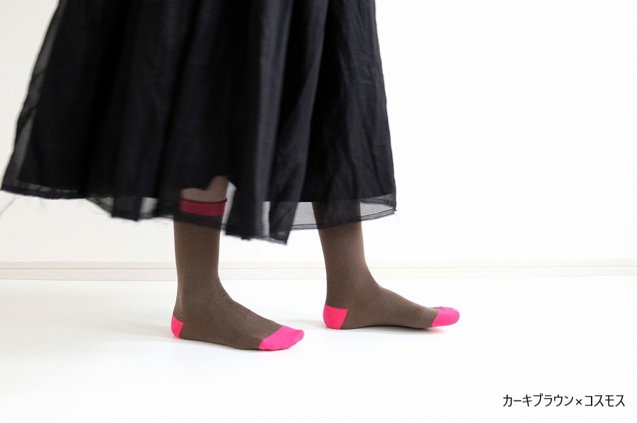 配色を施したつま先・かかと・履き口はややビビットな色合いで足元をシックながらも華やかに彩ります。