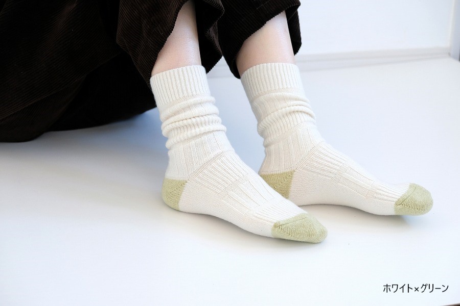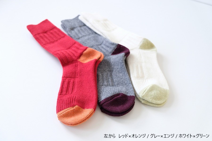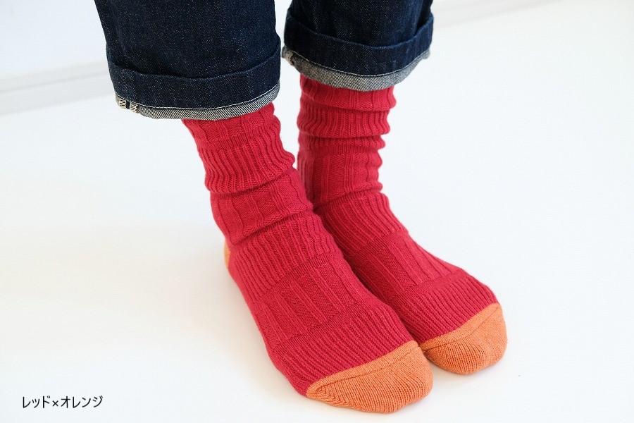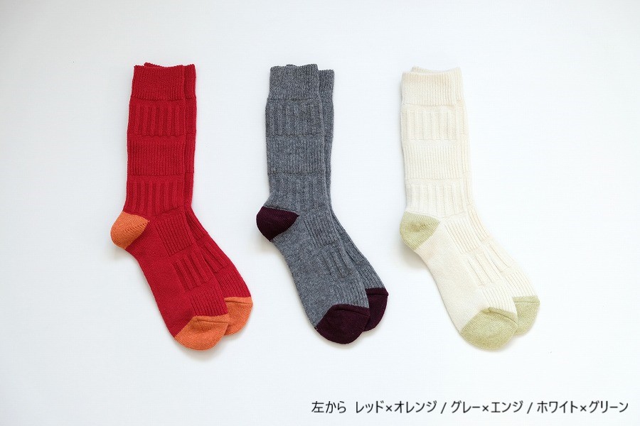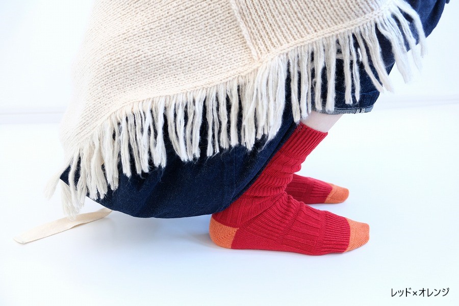 シンプルでありながら、つま先・かかとのカラー切り替えをポップにすることで、あそびゴコロをプラスした、足元から楽しくなる暖かい靴下です。