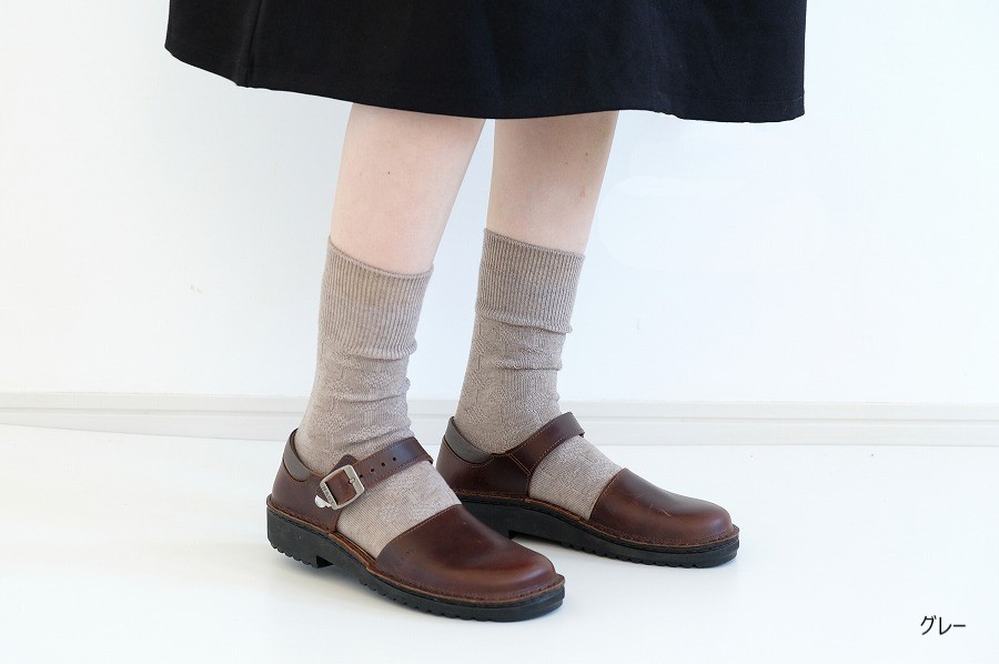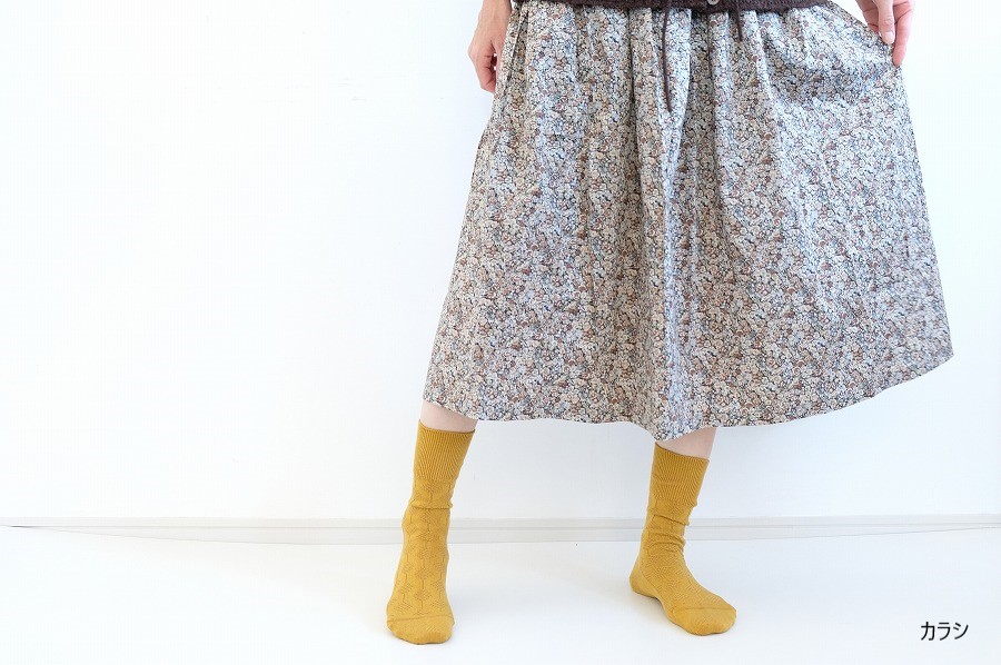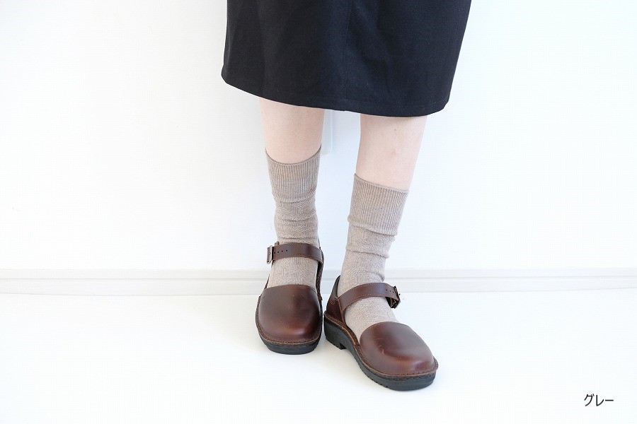 履き口のリブ部分を長く編み立てていますので、少したるませたり、ひとつ折り返したり、いろいろ表情を変えて楽しめます。