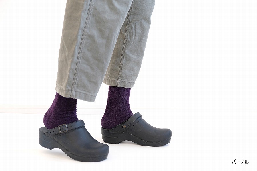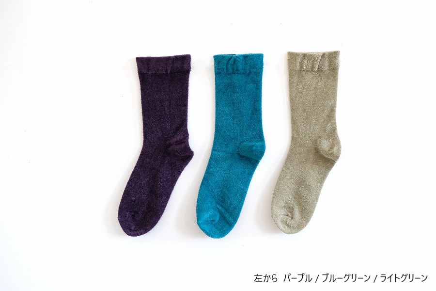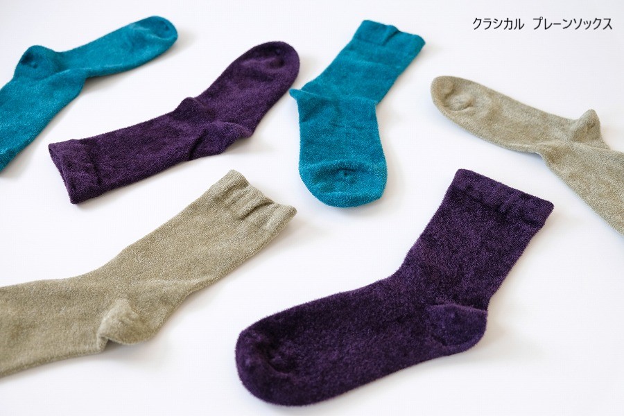 上品な艶とベルベットのような、温かみのある質感が特長のプレーンソックスです。