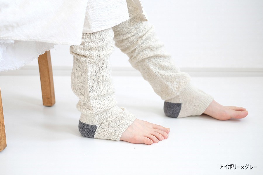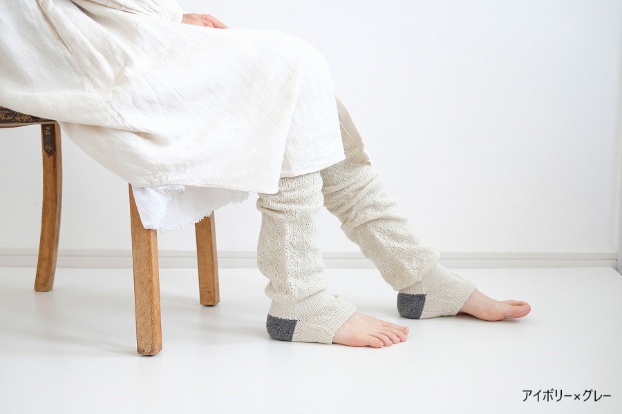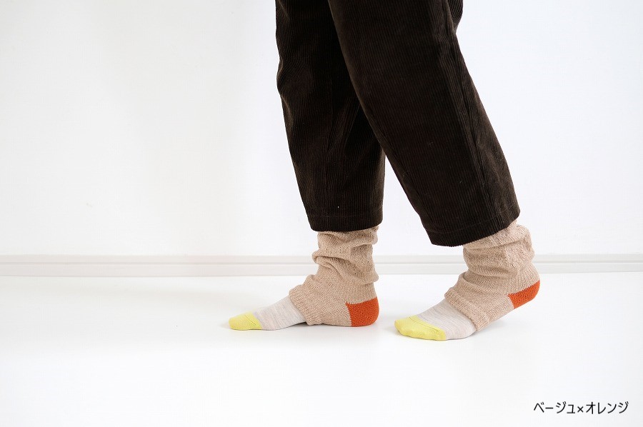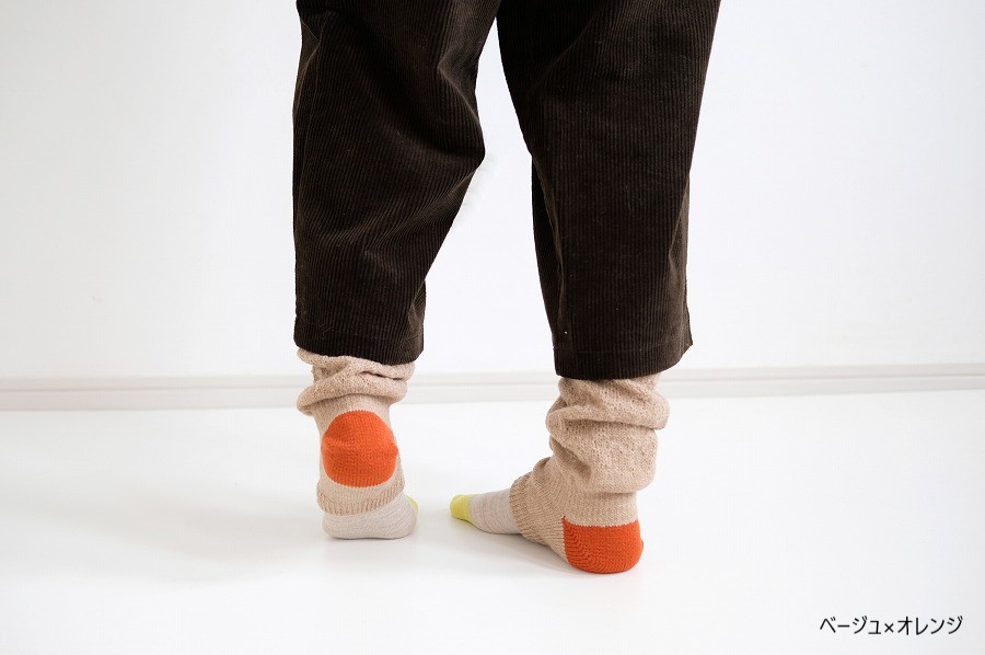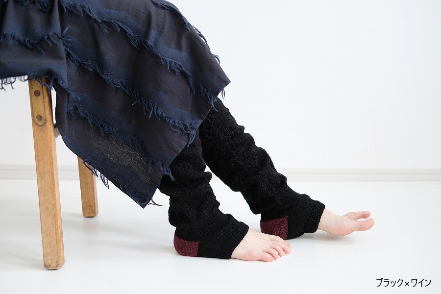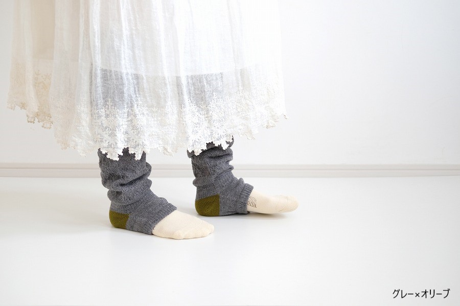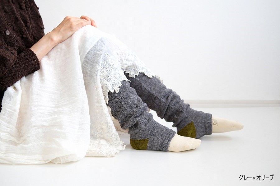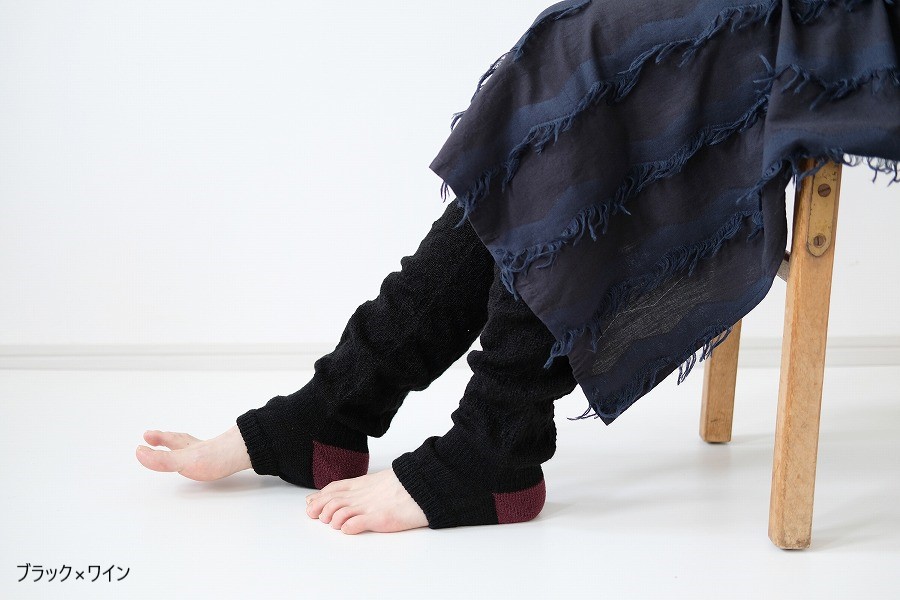 幅広でゆったり作っていますので、靴下やタイツの上はもちろん、細めのパンツの裾にと冬の装いに合わせて楽しんでいただけたらと思います。