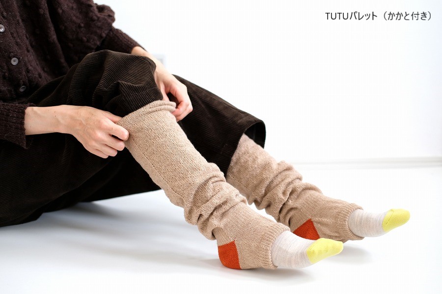 かかとの配色が楽しい、ジャガードのレッグウォーマー「TUTUパレット」。
