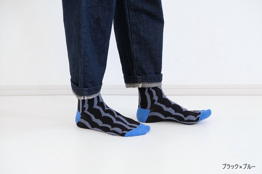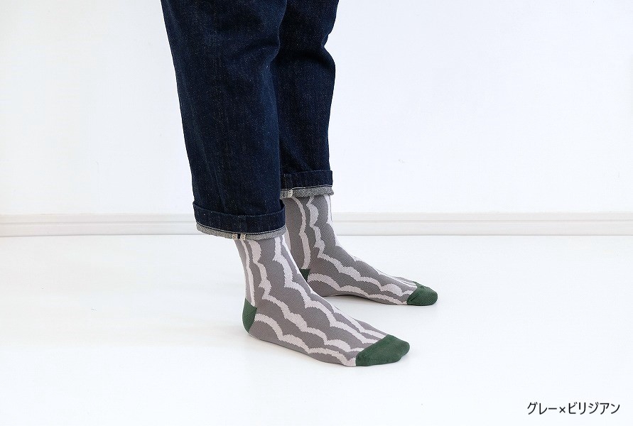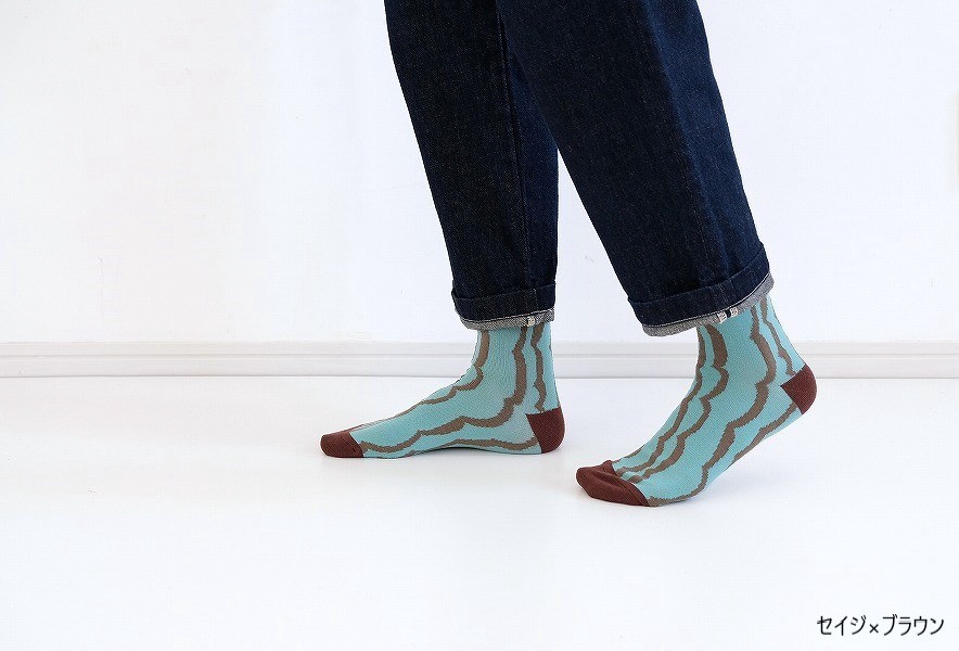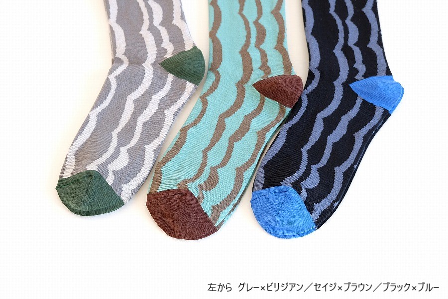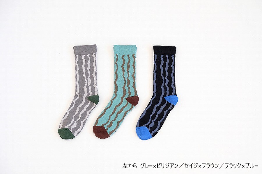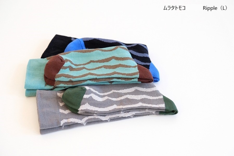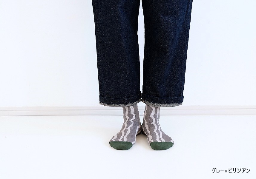 さざ波のライン部分は、綿麻の糸を使うことによりシャリ感をプラス、異素材ならではの感覚も楽しめます。履き口は、やさしい「深口」になっていますので、締め付け感が苦手な方にも履きやすい仕様です。