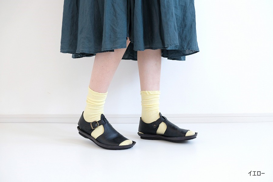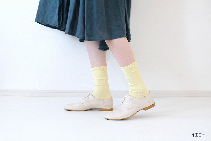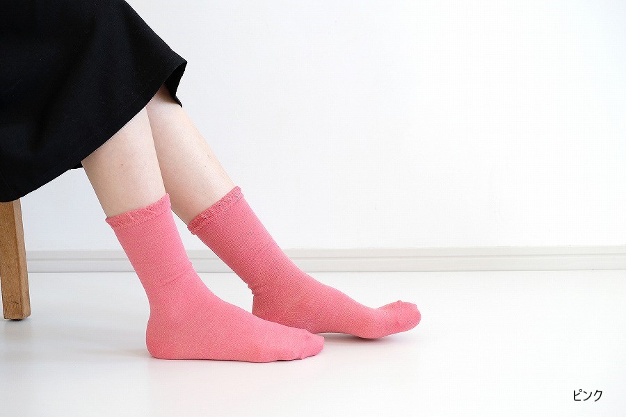 履き口は伸びのよいやわからなフリルを施し、足を通したときに伸びがよくフィットして、手触りの滑らかさが特徴です。