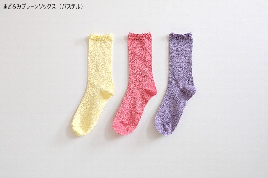 綿の糸とナイロン糸を撚って編み立てることで、しなやかな肌触りを実現した「まどろみプレーンソックス」に、パステルカラーが登場です。