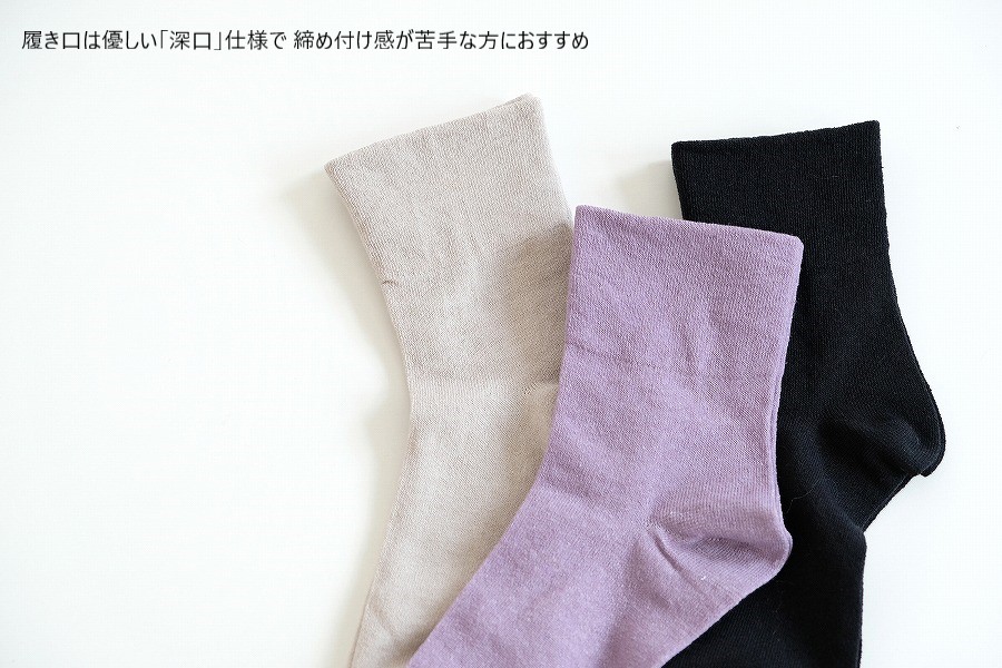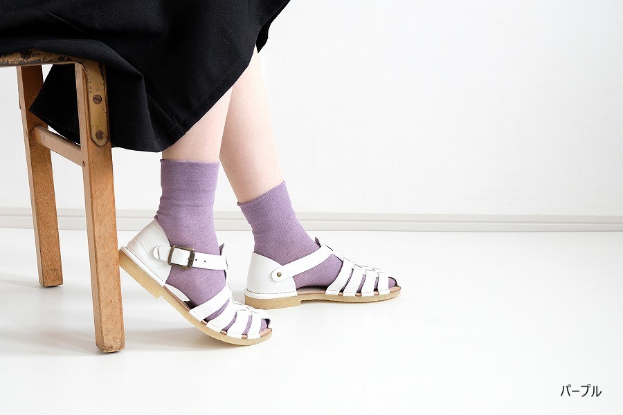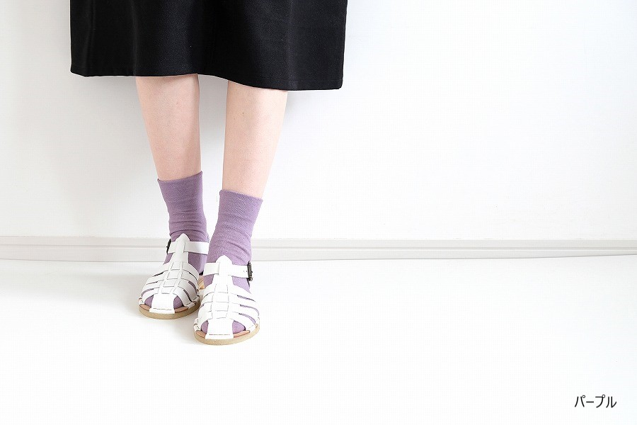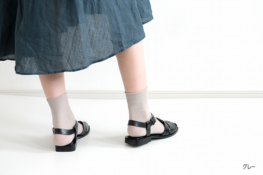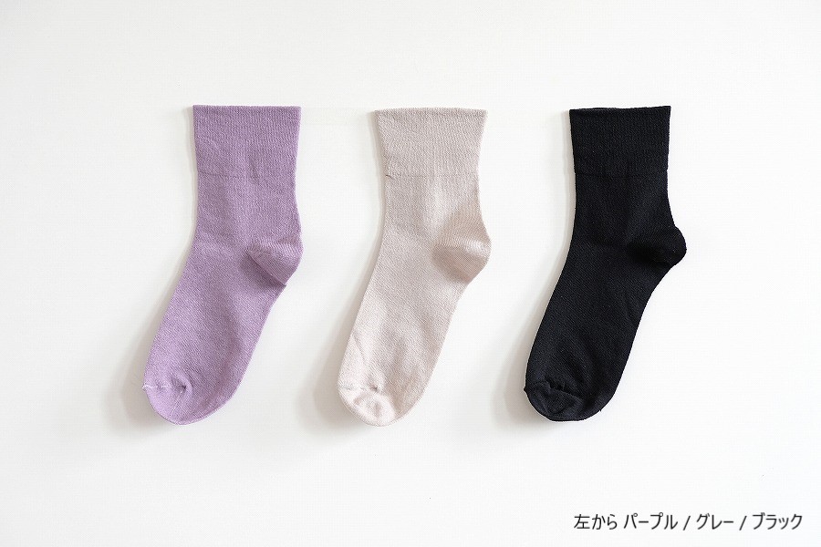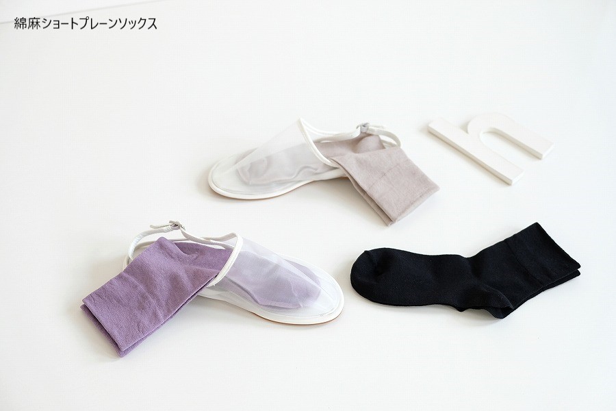 春夏にぴったりな、綿と麻のシャリ感のある糸で薄地に仕上げた、シンプルでシックな色で編み立てた靴下です。