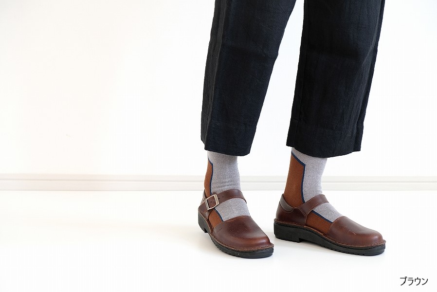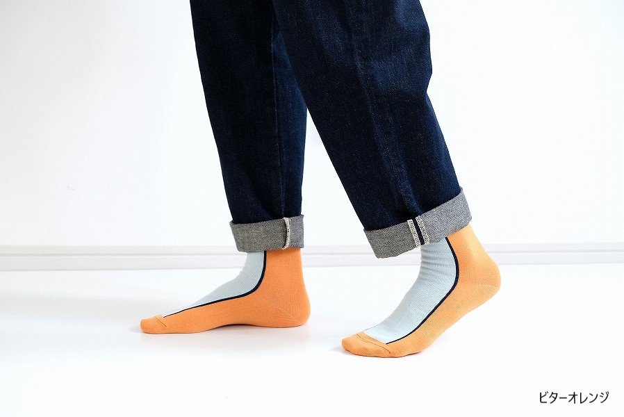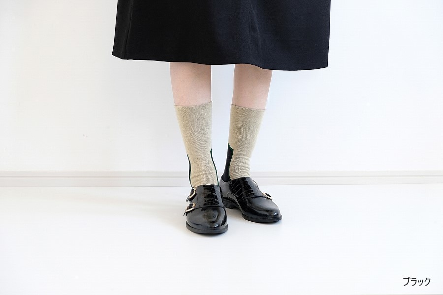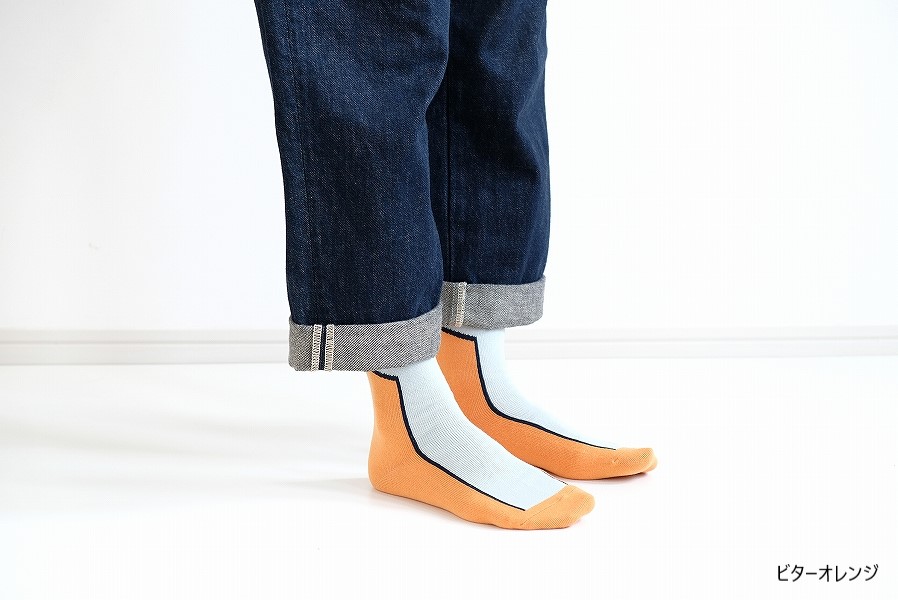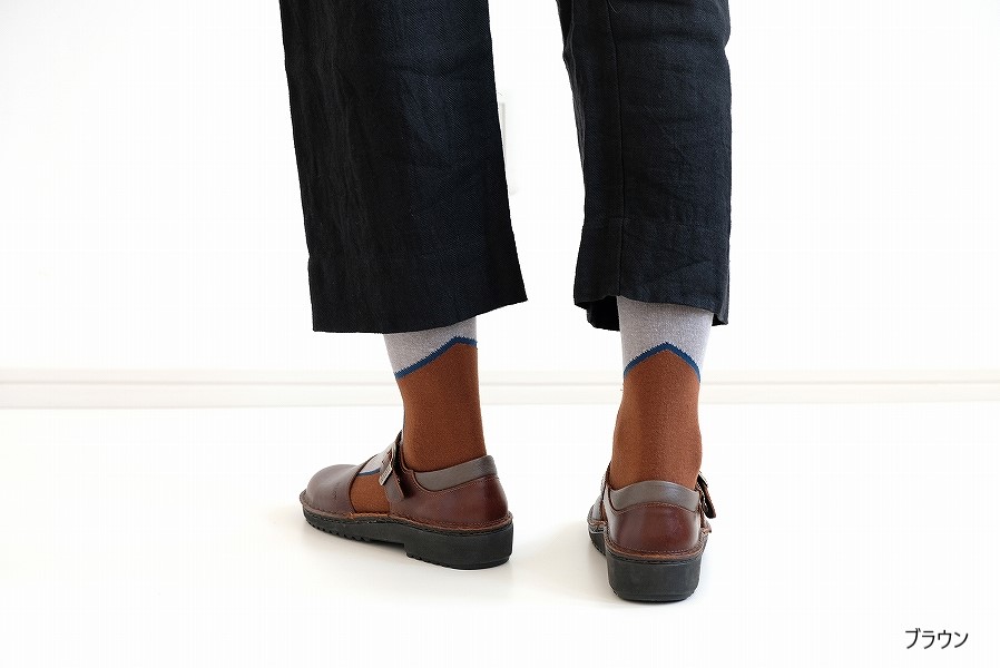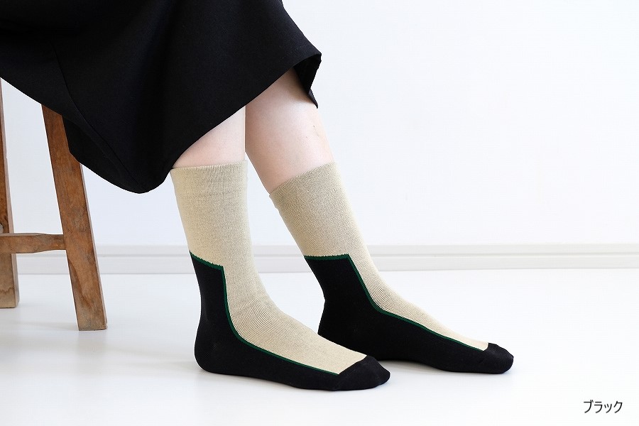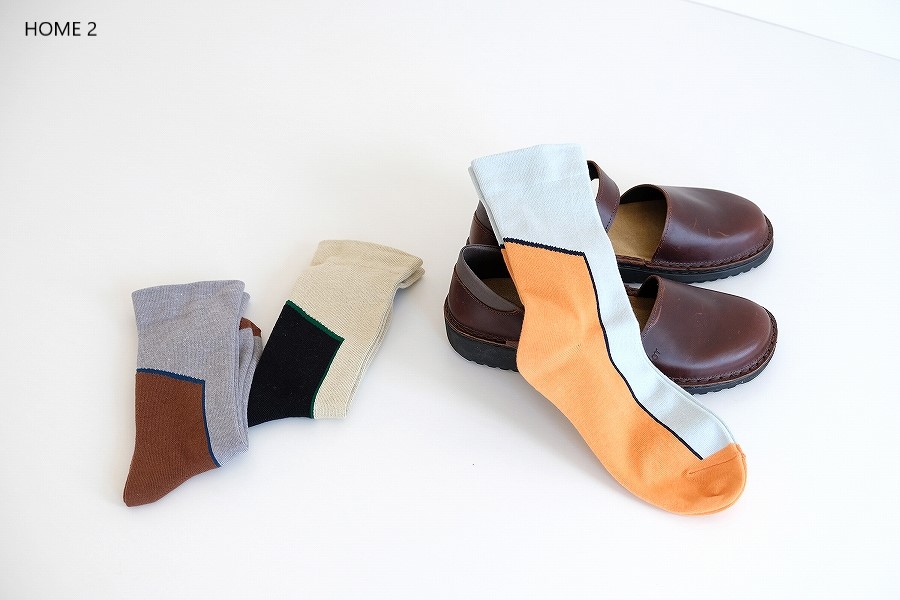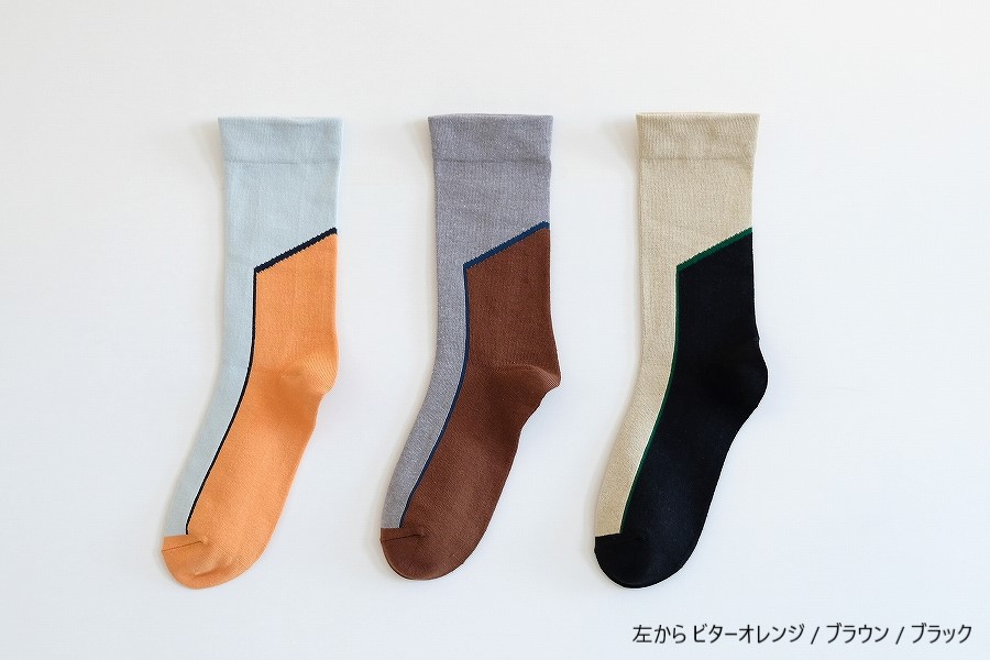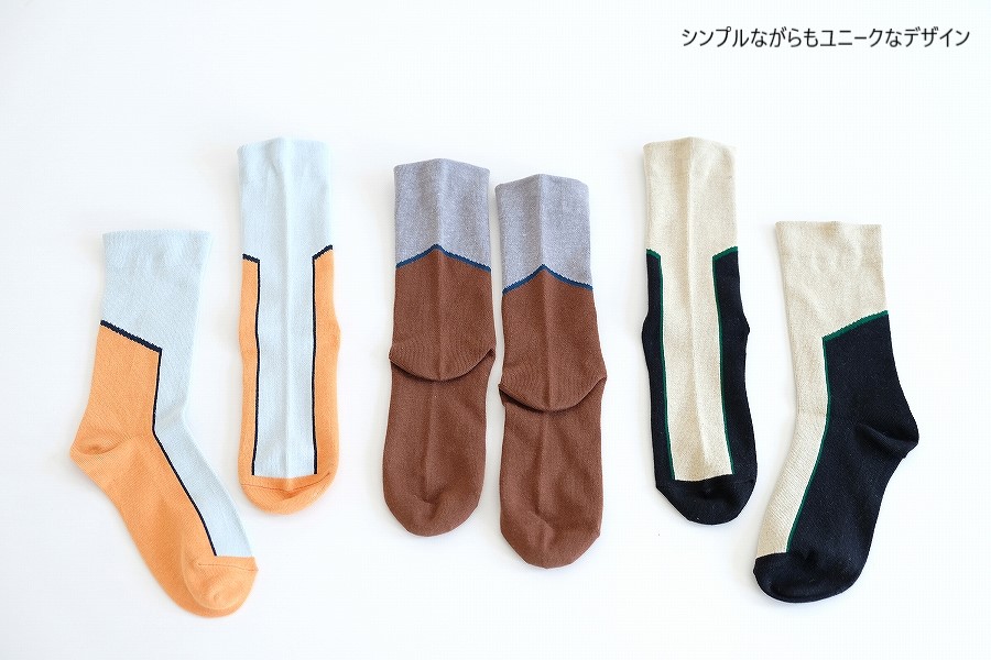 家にうつる光の色合いをイメージした、シンプルながらもユニークなデザインの靴下です。