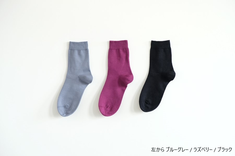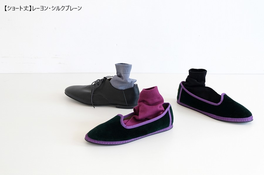 滑らかなレーヨンシルクの糸で編み立てた、シンプルなショートソックス。