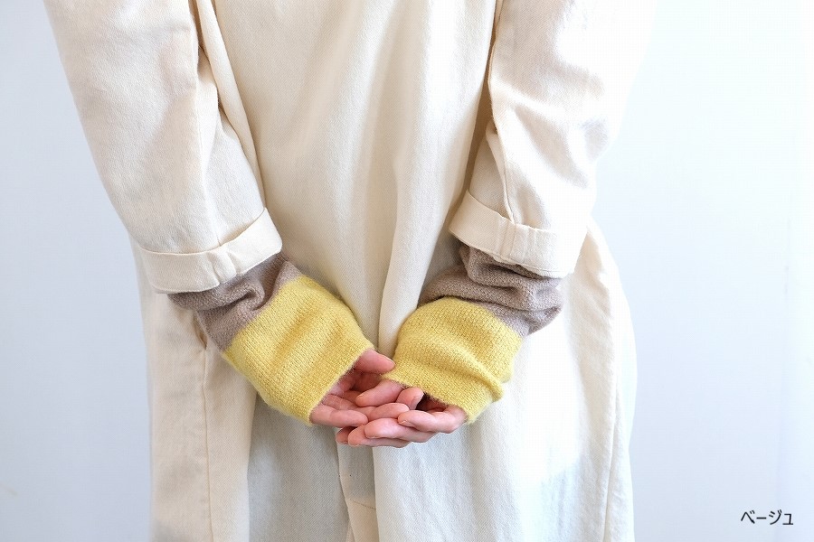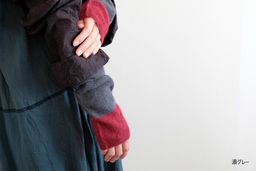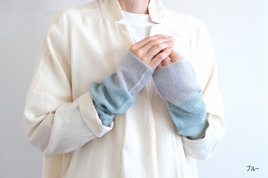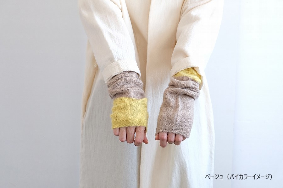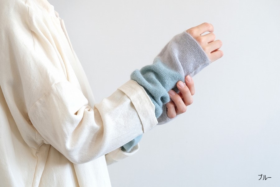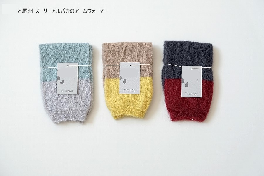 尾州の紡績工場が紡ぐ、スーリー種のベビーアルパカ糸を使用したアームウォーマーです。