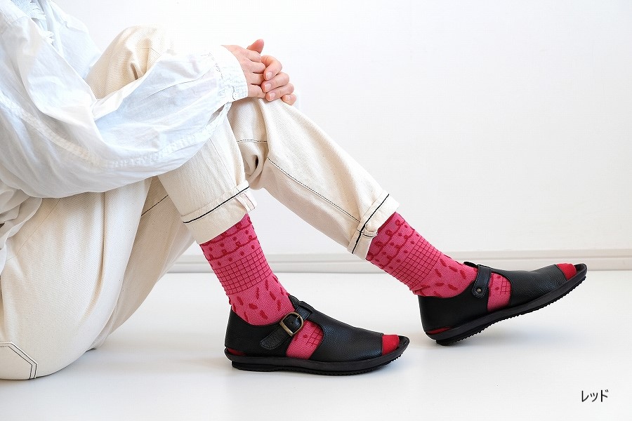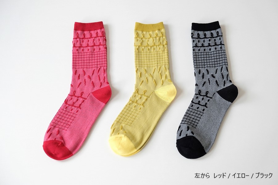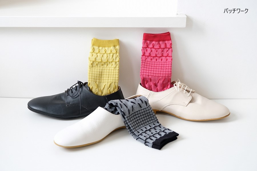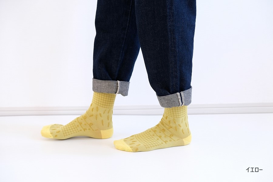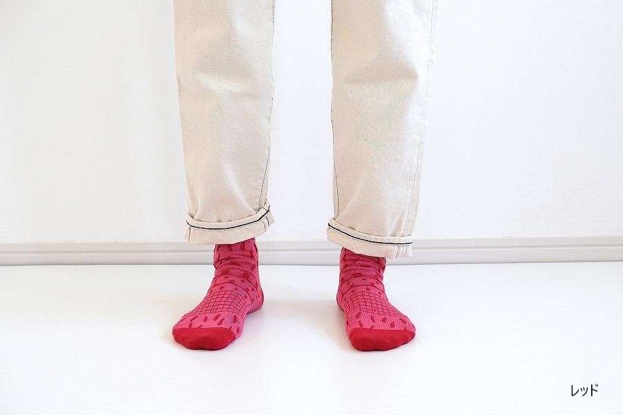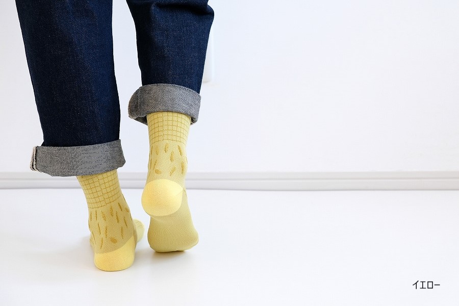 一年を通して履いていただけるよう、手触りのよい綿混の糸で編み立てています。